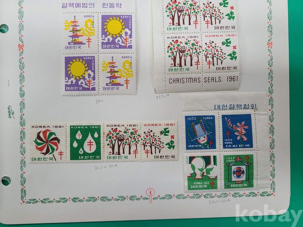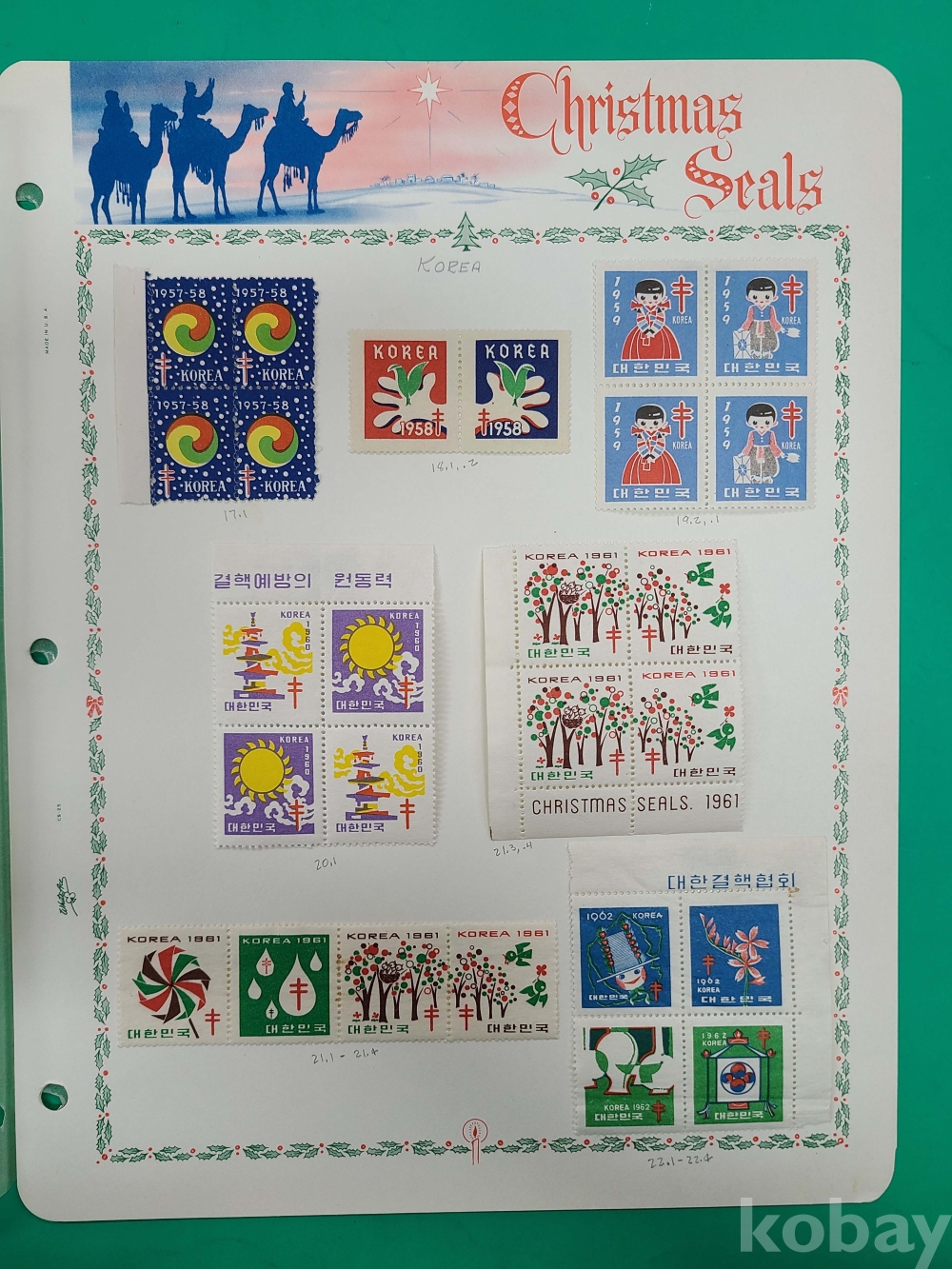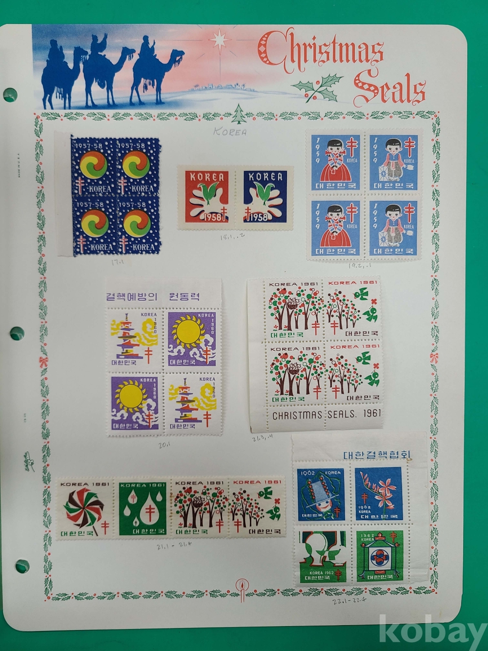 [크리스마스 씰] 1957년,1958년,1959년,1960년,1961년,1962년/후면 힌지로 붙임