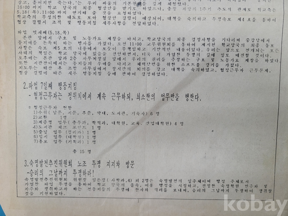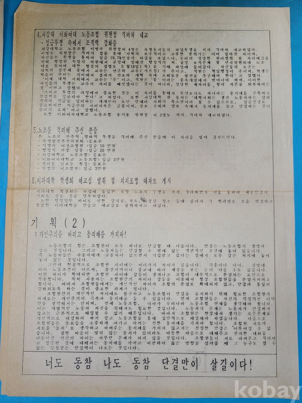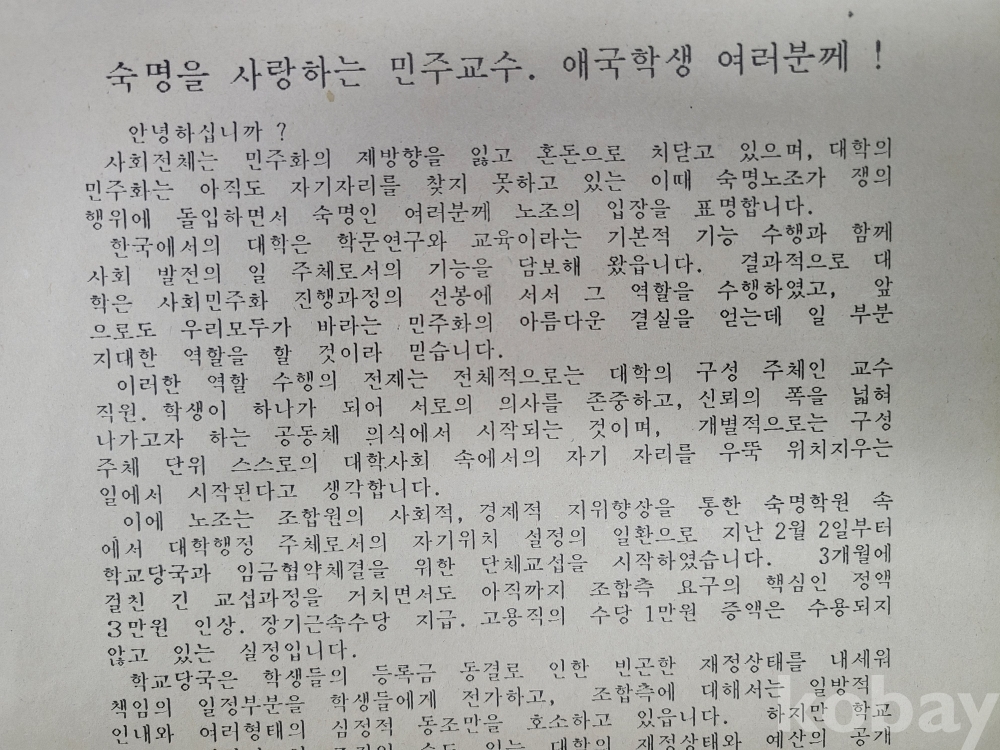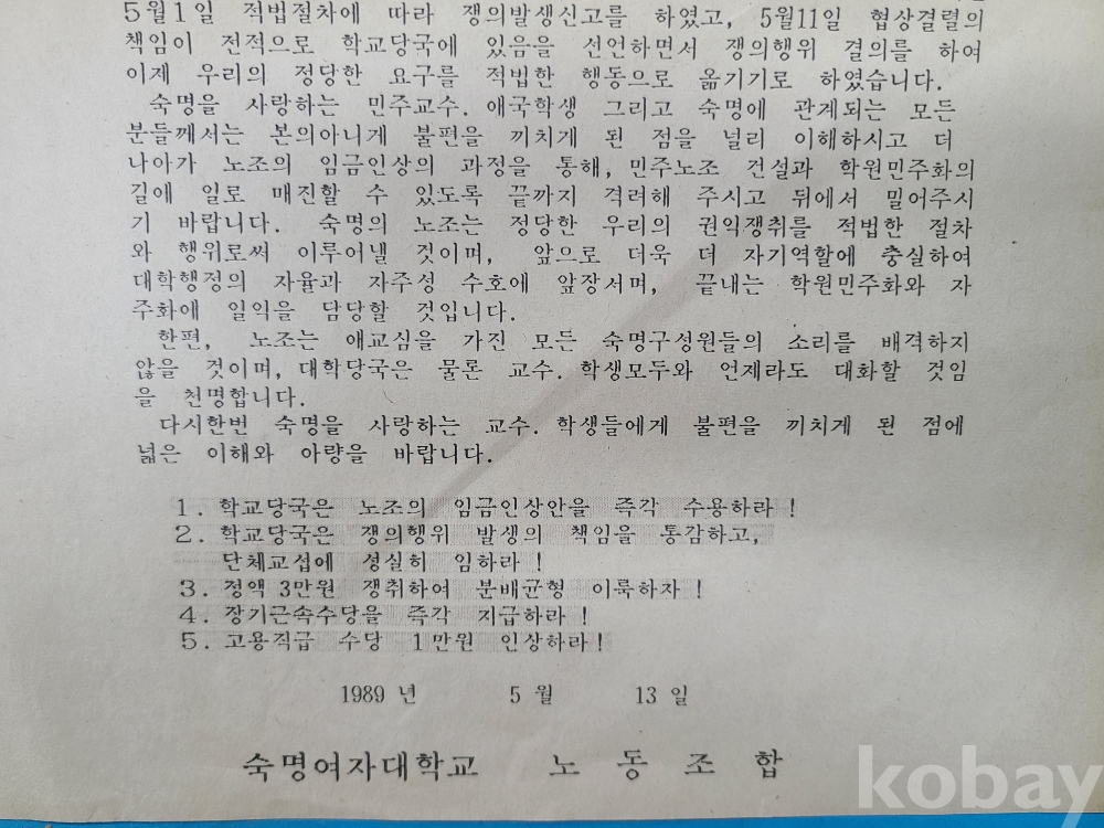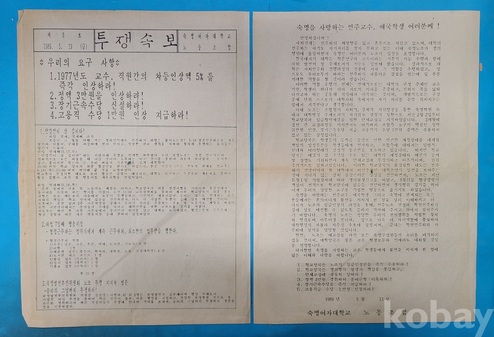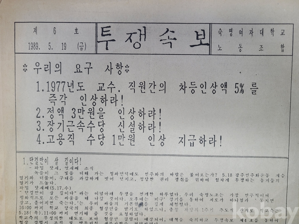 숙명여자대학교 노동조합 자료*투쟁속보 제6호 (1989.5.19.) 숙명을 사랑하는 민주교수.애국학생 여러분께! (1989년 5월 13일)