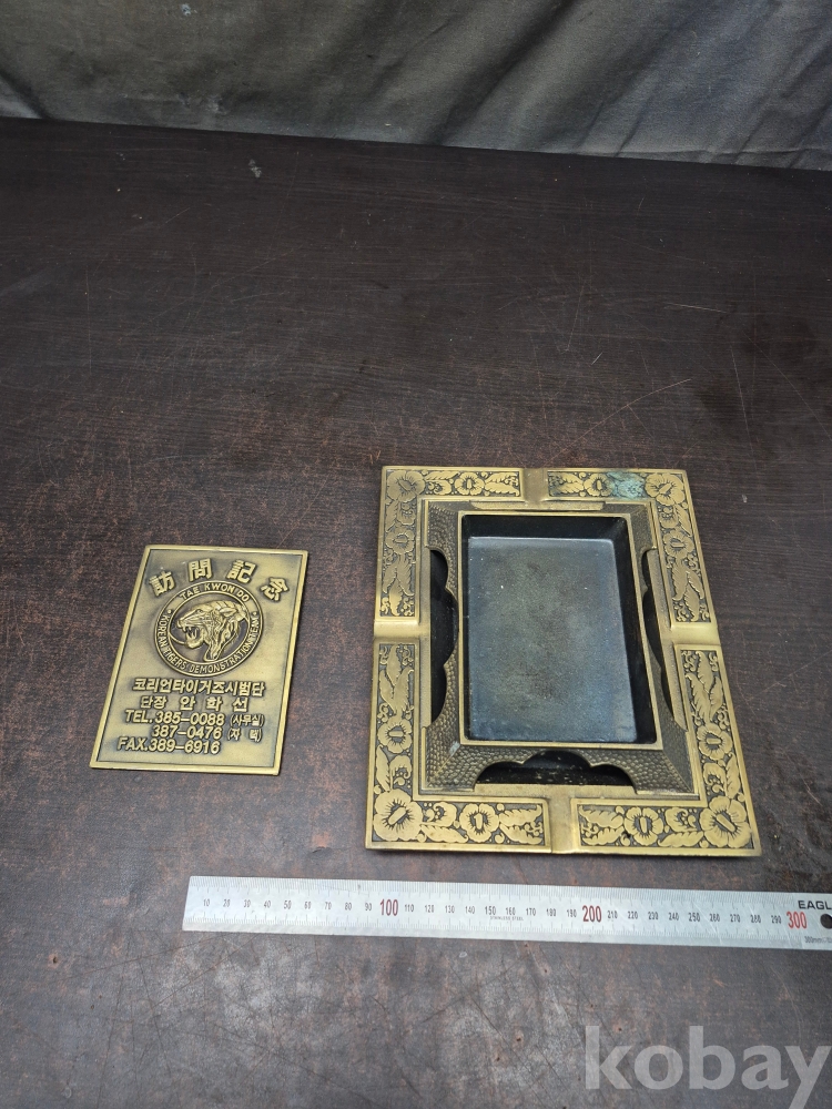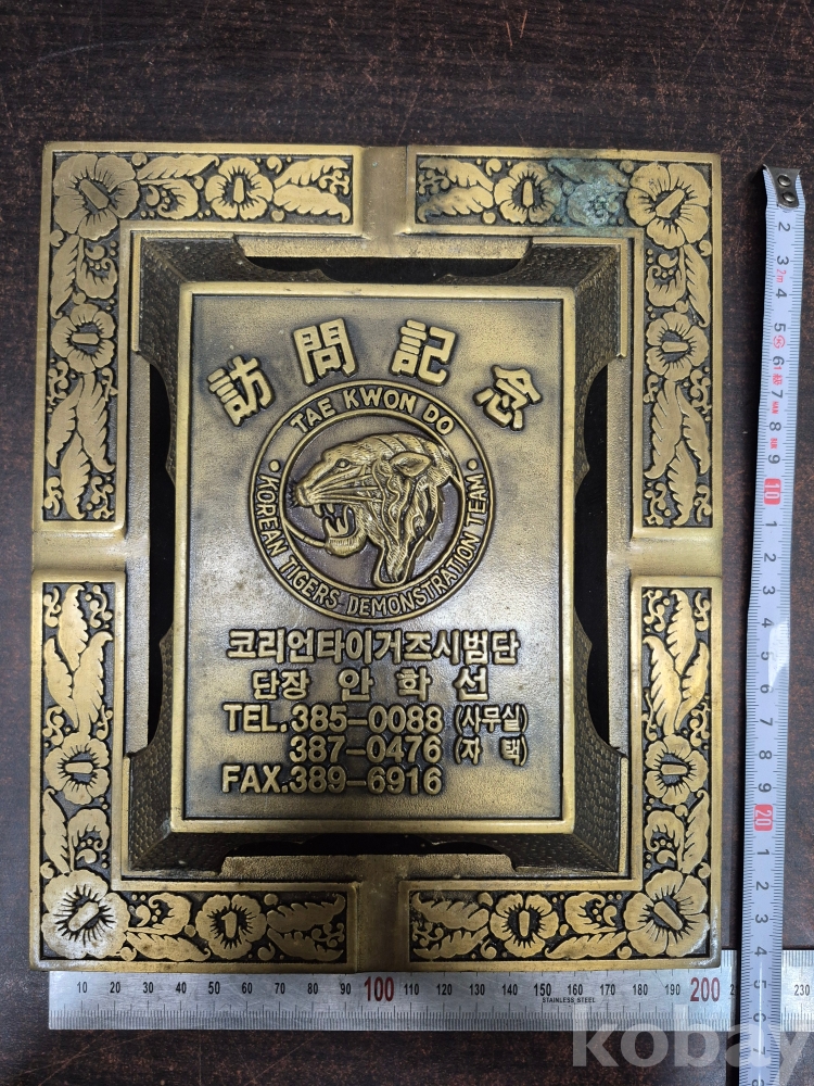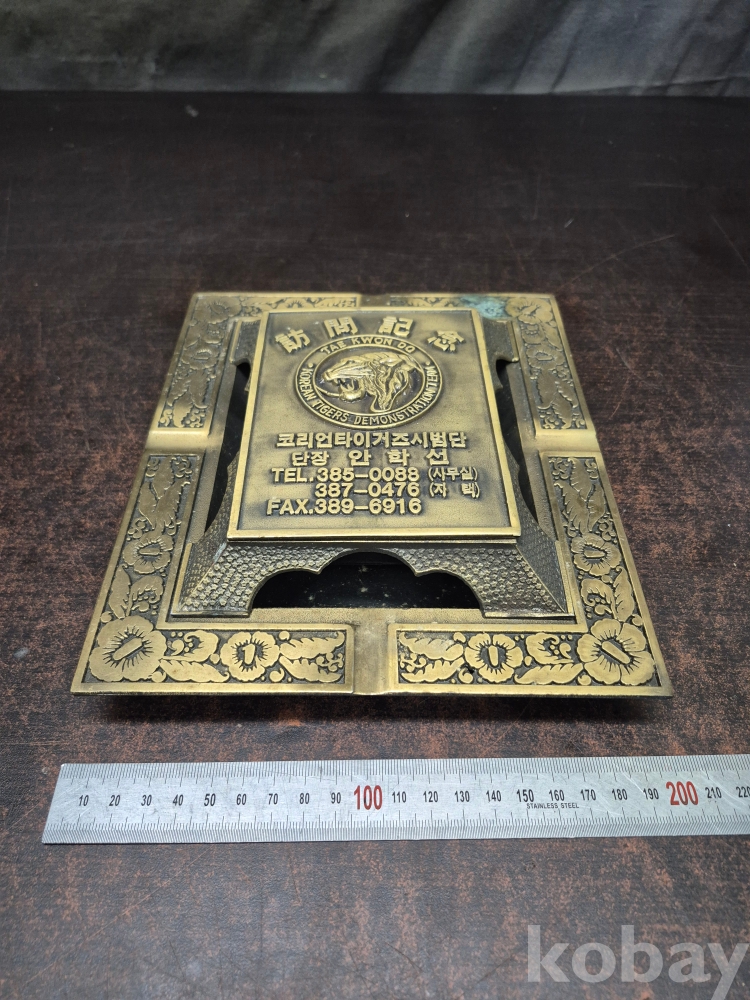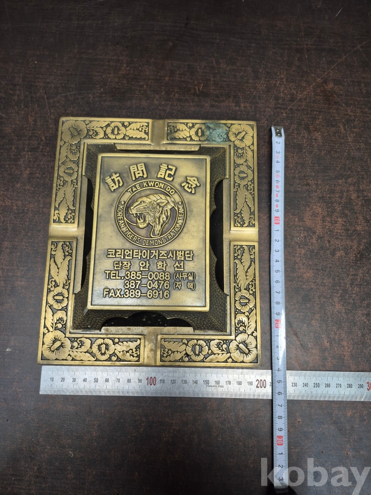 태권도 코리언 타이거즈 시범다 단장 안학선 방문기념 미사용 합금 재떨이 19.5*23*5