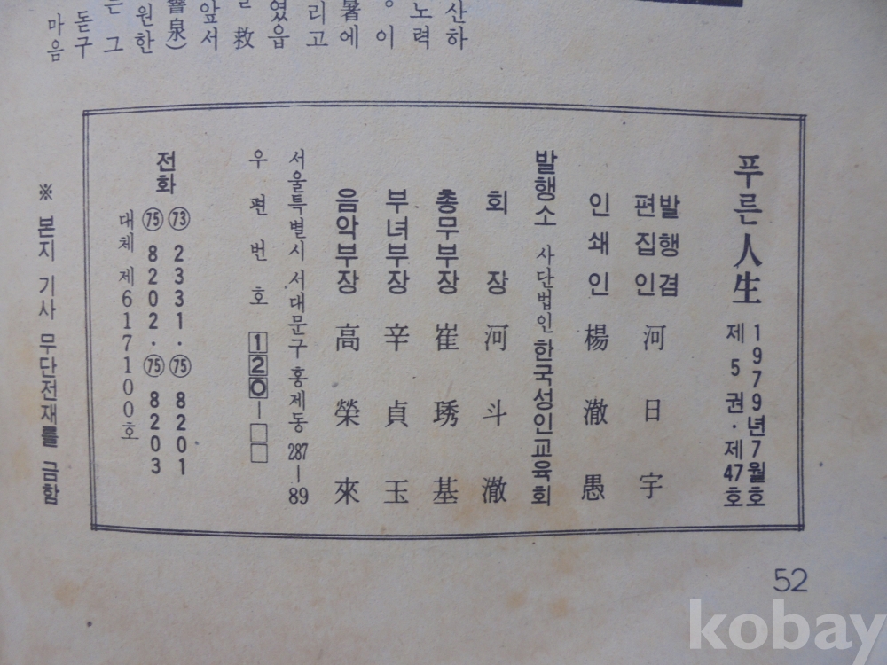 1979년 " 푸른인생 " 희귀잡지