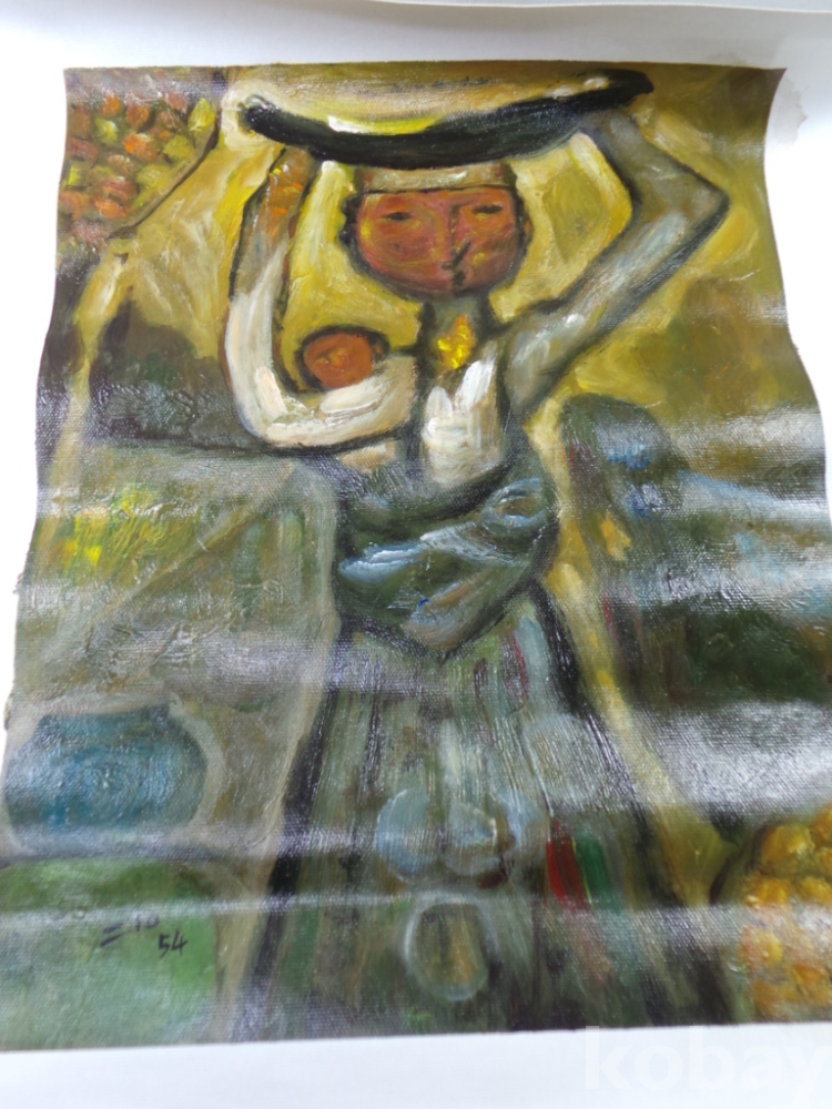 유화그림은 돌돌 말려져 있는 상태입니다.