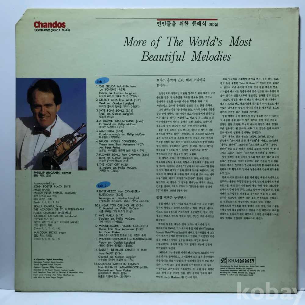 LP 36,050-93 연인들을 위한 클래식 2집- Phillip Mccann, Cornet . 90 서울 자켓 EX 알판 EX+