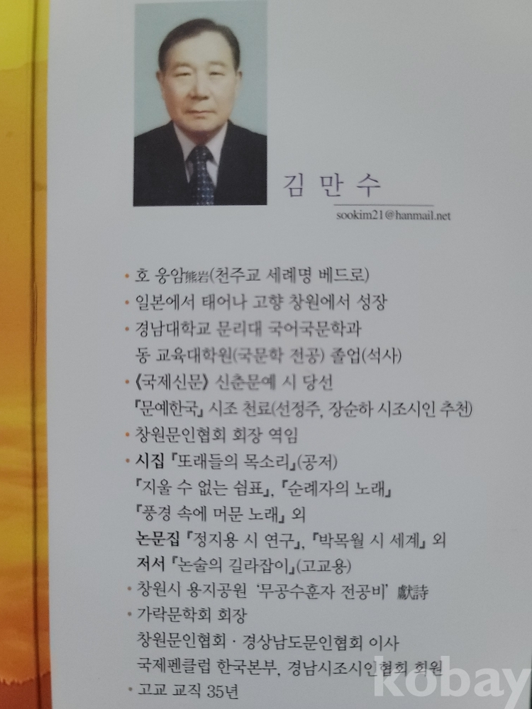 경남대학교 국어국문학과 및 동 교육대학원 국어교육과 졸업(金萬壽).