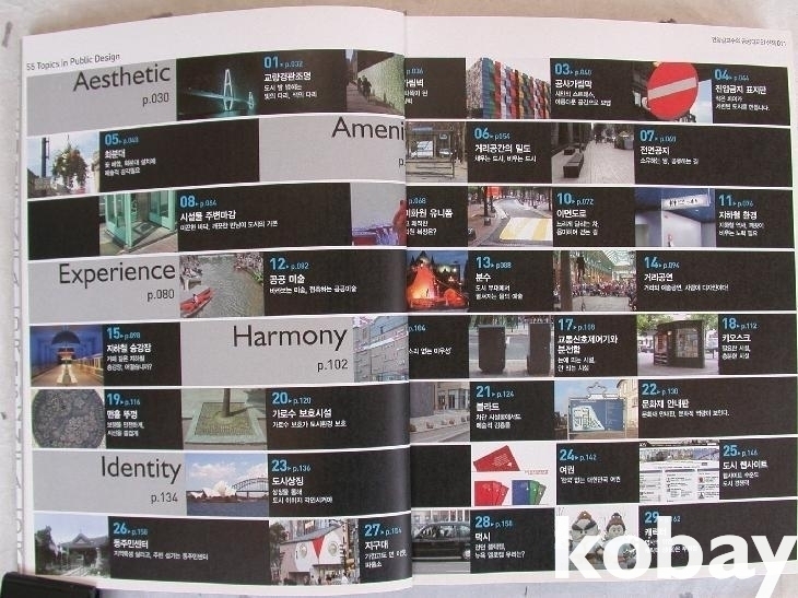 책은 <목차>처럼 주제별로 미화, 쾌적, 체험, 질서 등의 주제로 크게 구분하고 그 아래 소주제 50가지를 배치하며 살폈다. 우체통, 지하철표시 등 구체적인 각 나라의 사례를 많은 도판으로 실으며 비교해볼 수 있게 해놓은 장점이 있다.
