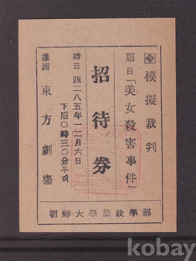 - 전쟁당시 1952년 모의재판 미녀살인사건 - 동방극장 조선대학법정학부 초대권