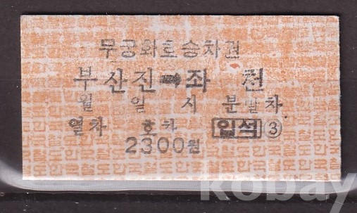 - 미사용 무궁화호 승차권 " 부산진 ▶ 좌천 " 2300원