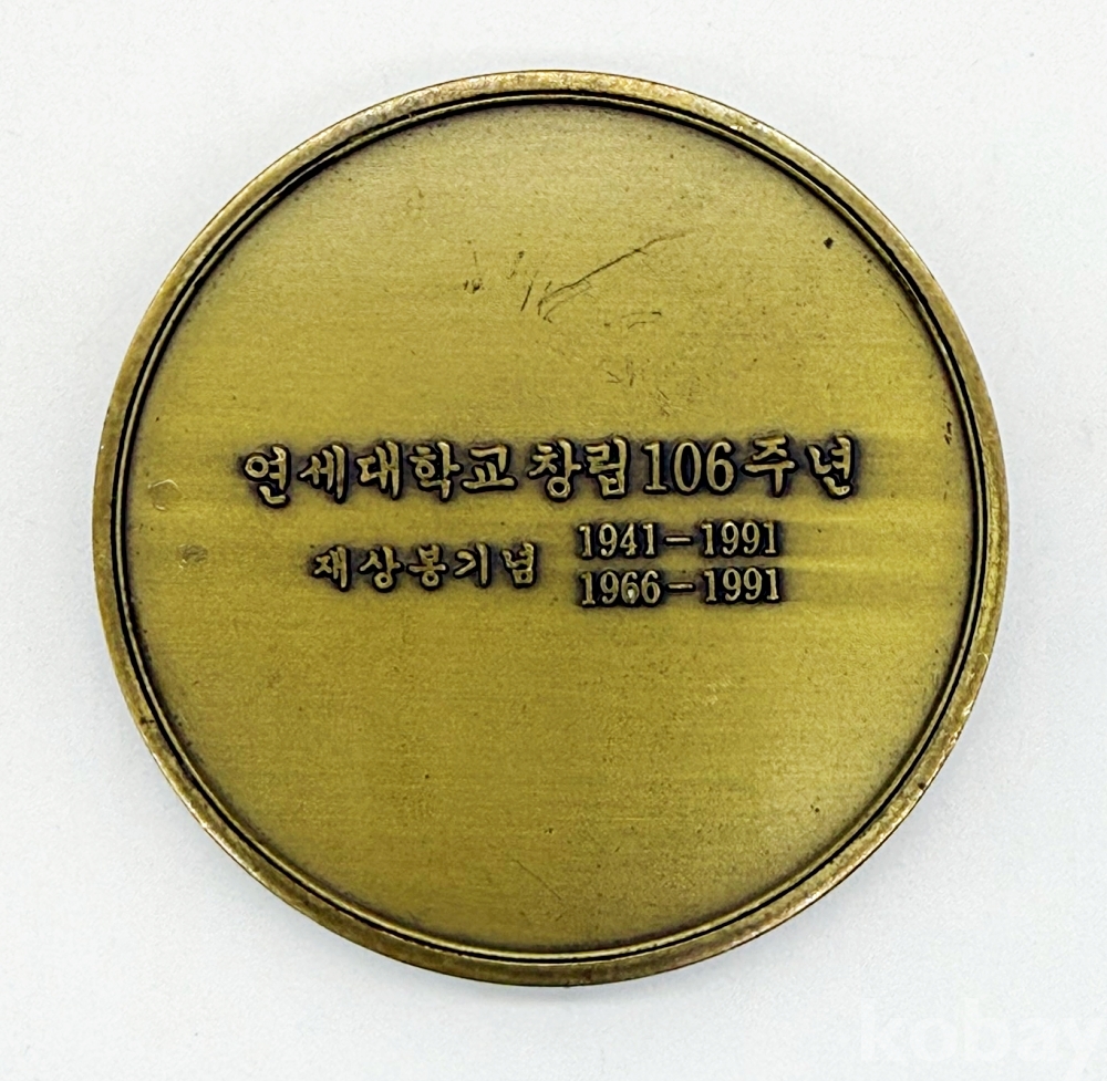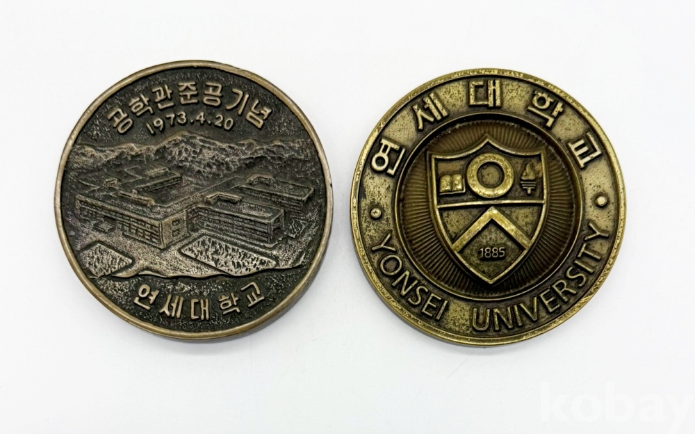 상품 설명 | ① 1973년 4월 20일 연세대학교 공학관 준공 기념 메달 1점 ② 1991년 연세대학교 창립 106주년 기념 메달 1점 | ||