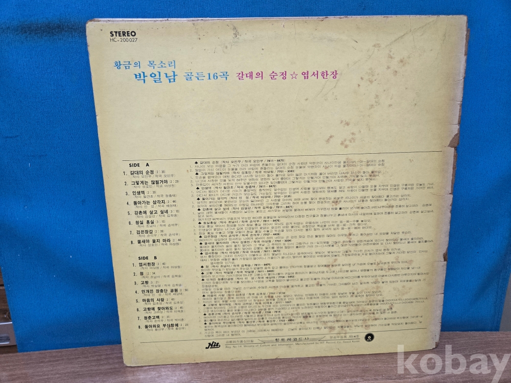 | 자켓상태 | EX : 약간의 마모, 모서리 찢김 존재 | 음반상태 | EX : 재생에 영향 없는 가벼운 기스 존재 | 발매정보 | 초반 | 가사지여부 | 무 |