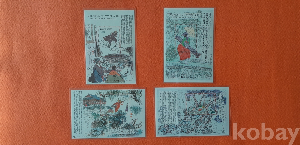 문학시리즈 다섯번째 소형시트 4종 세트 입니다.