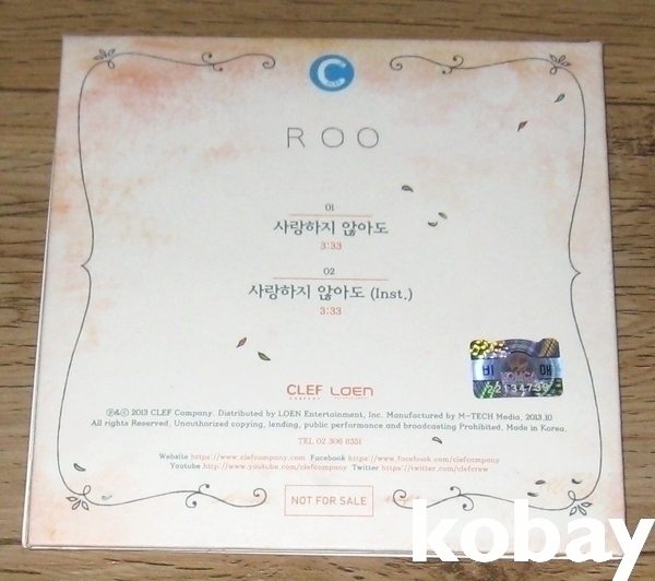 ROO(루) 디지털싱글 CD - 사랑하지 않아도 / (2013년 )