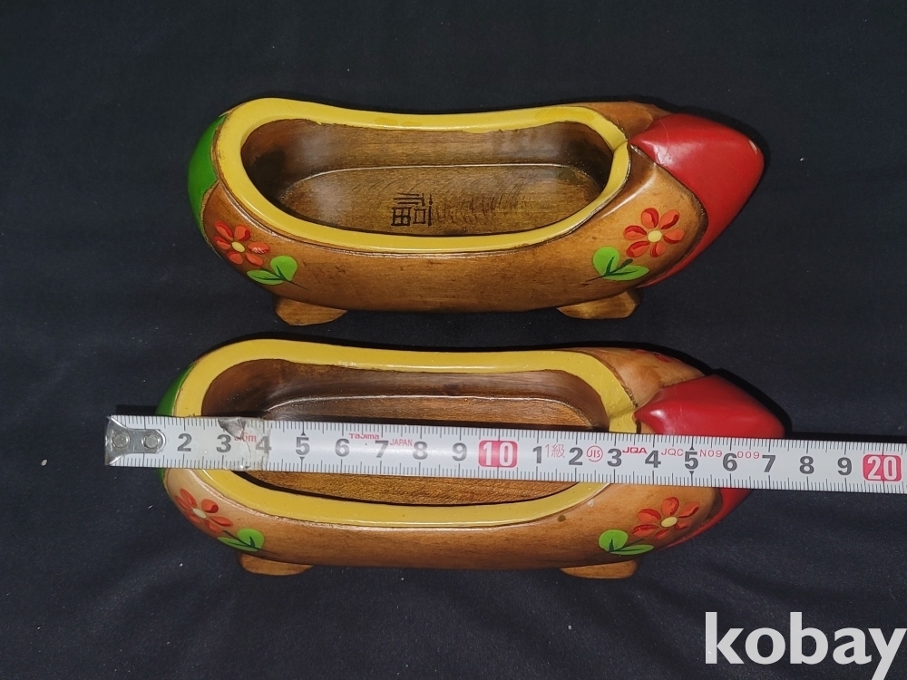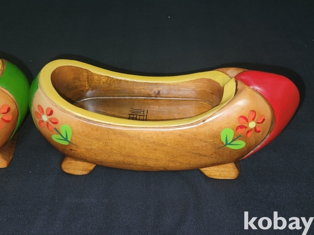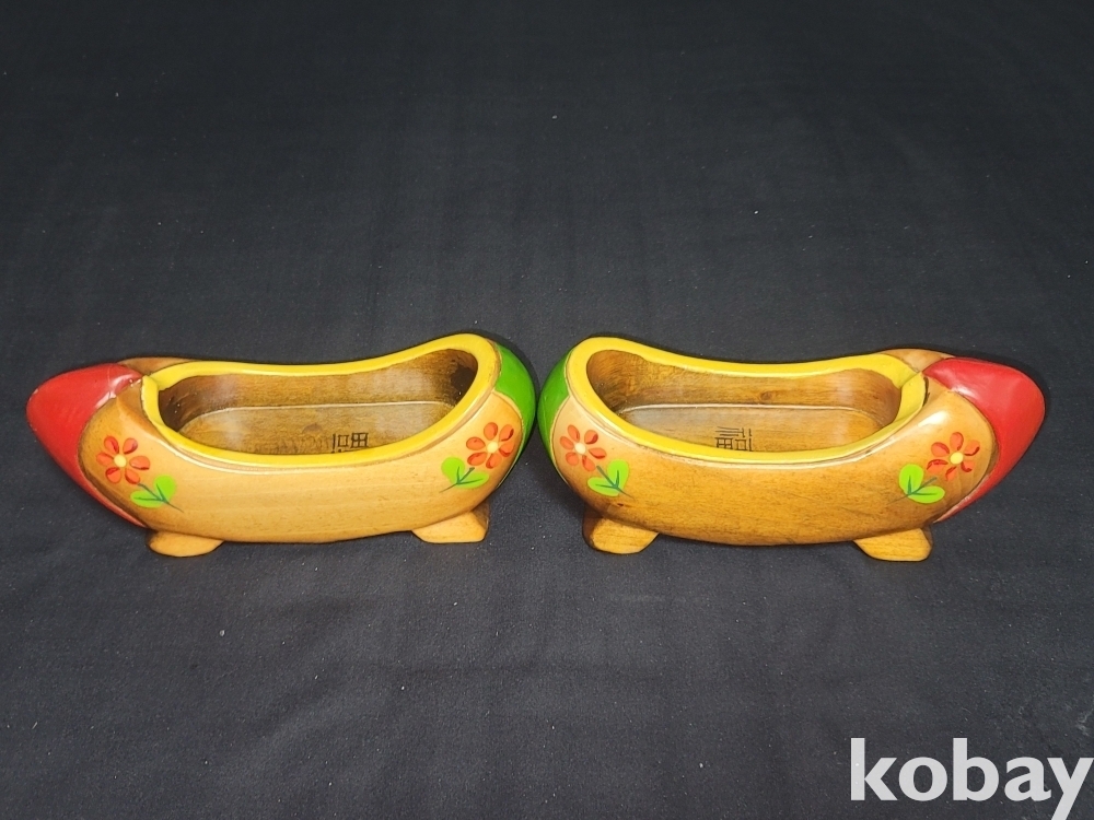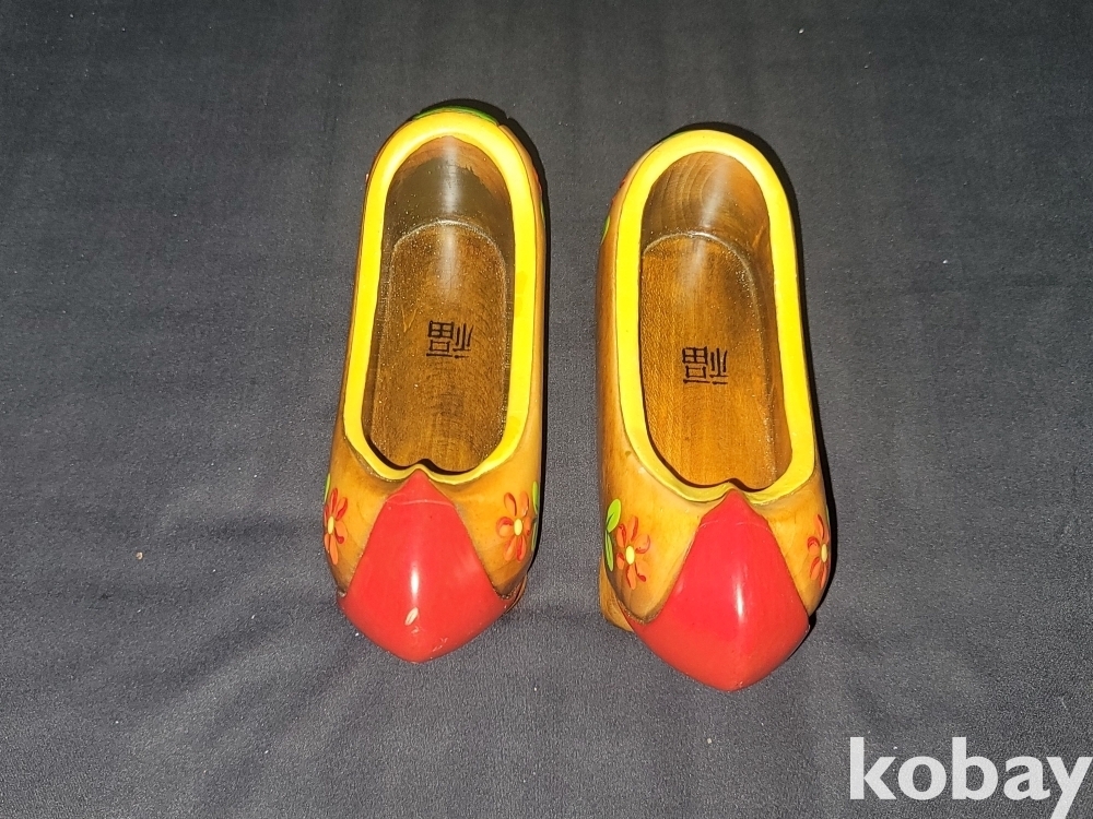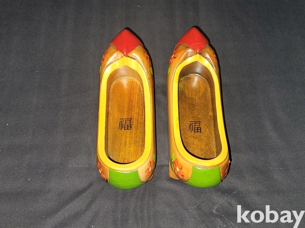 빈티지 앤틱 나무로 조각하고 색을 칠한 신발 공예품입니다.