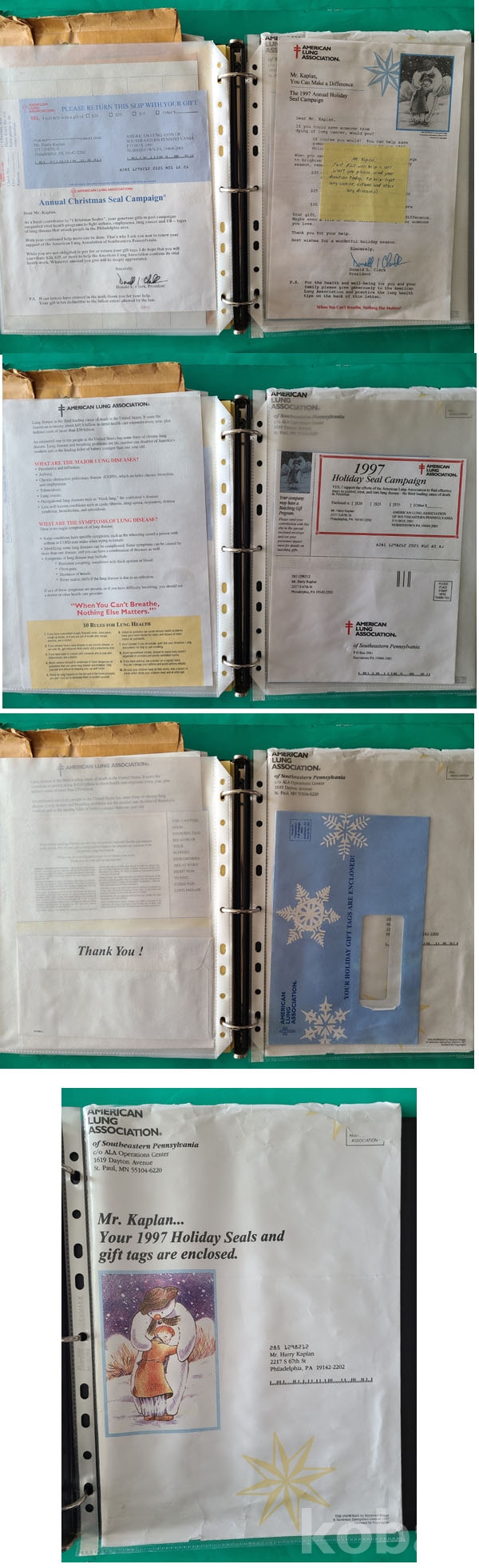 **** 전지(스티커형),미국폐협회 실체봉투,기타자료 등