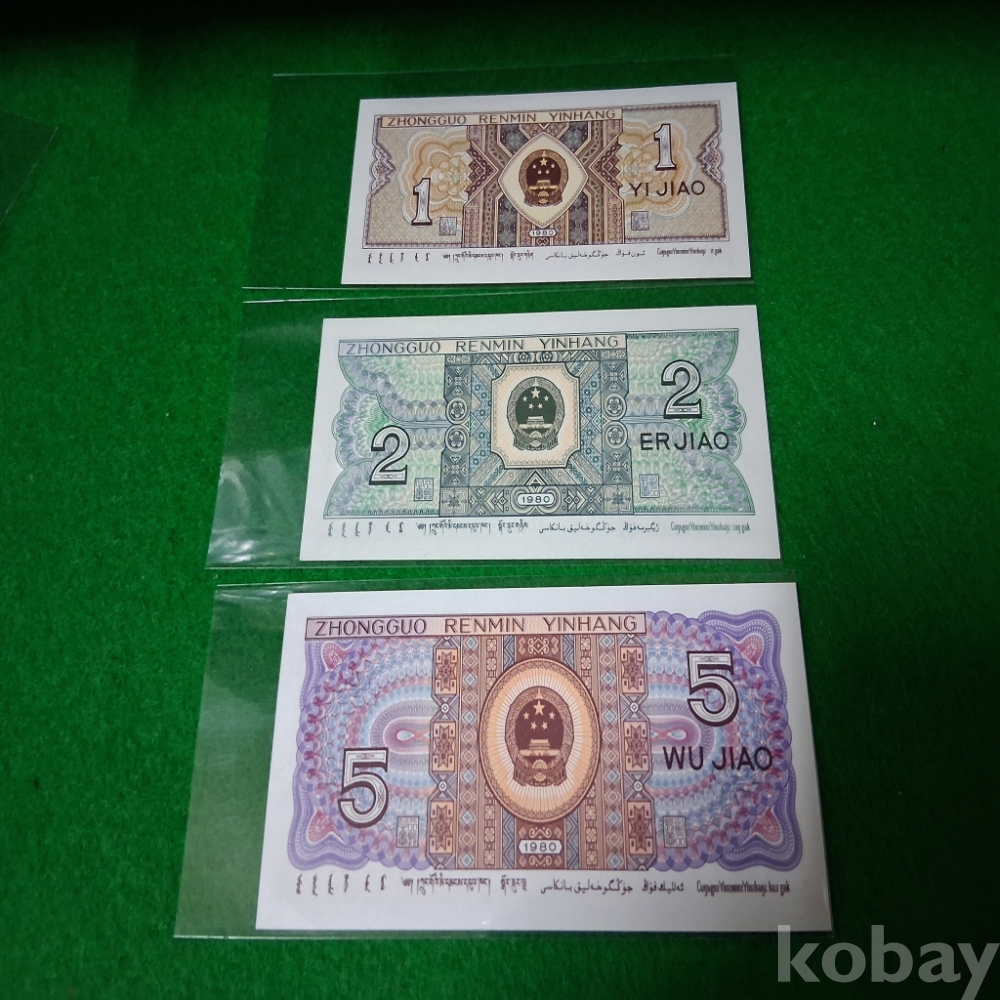 중국 1980년 1,2,5각 3종셋트 미사용