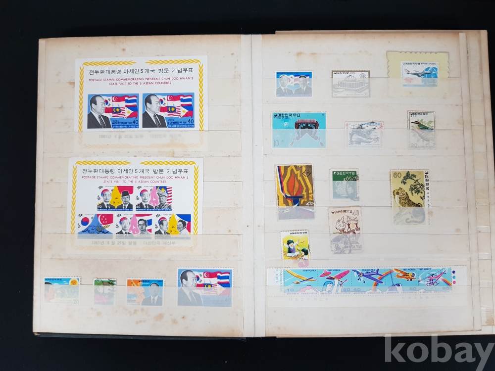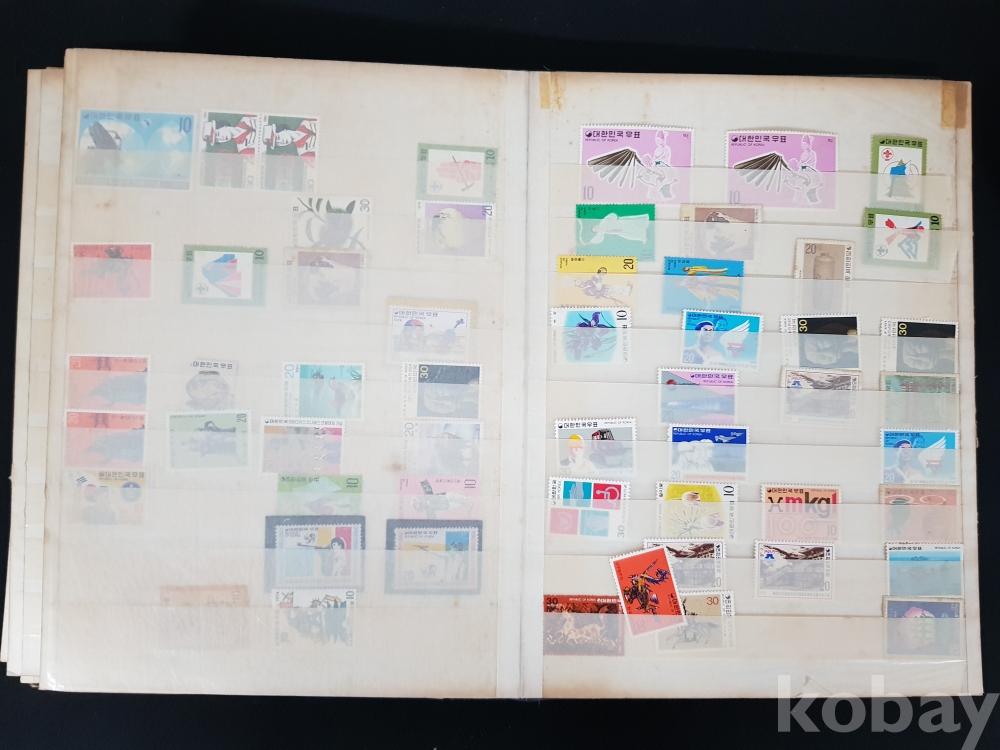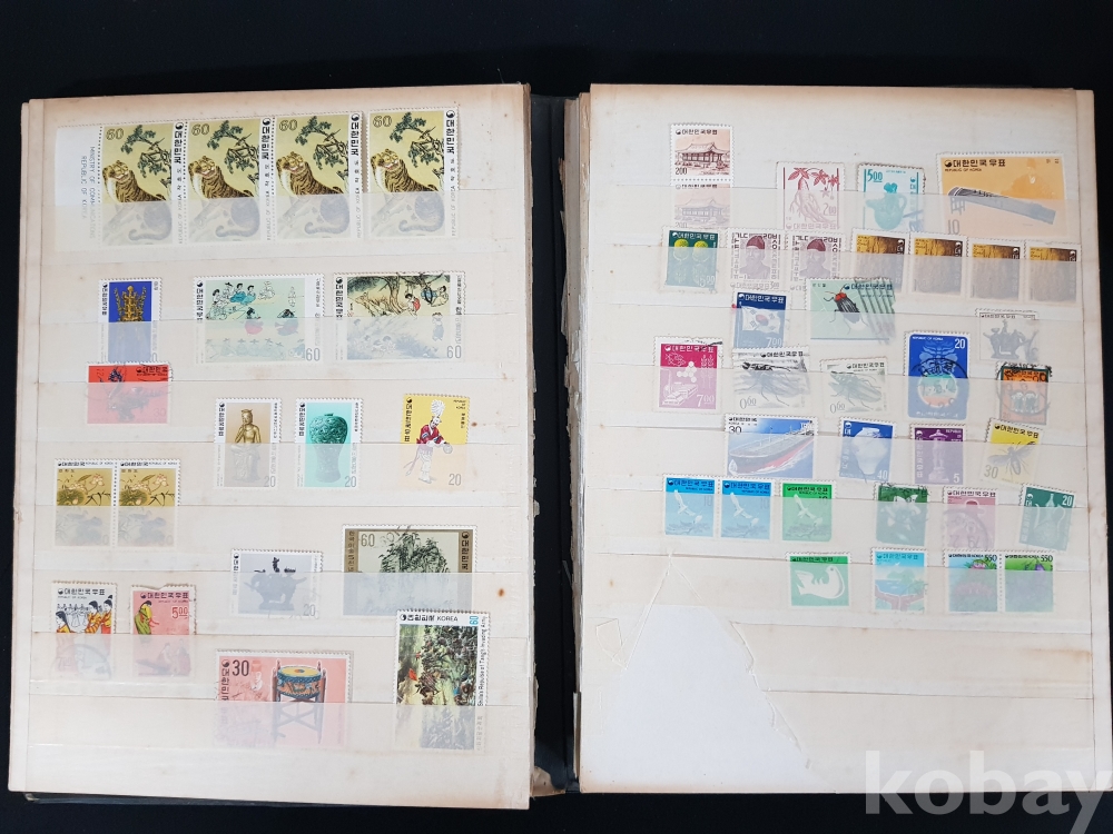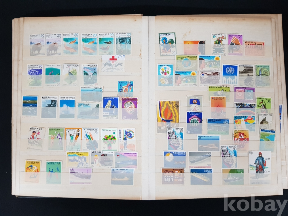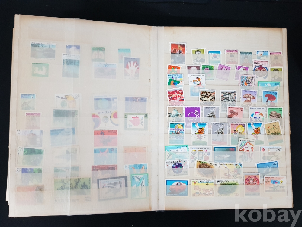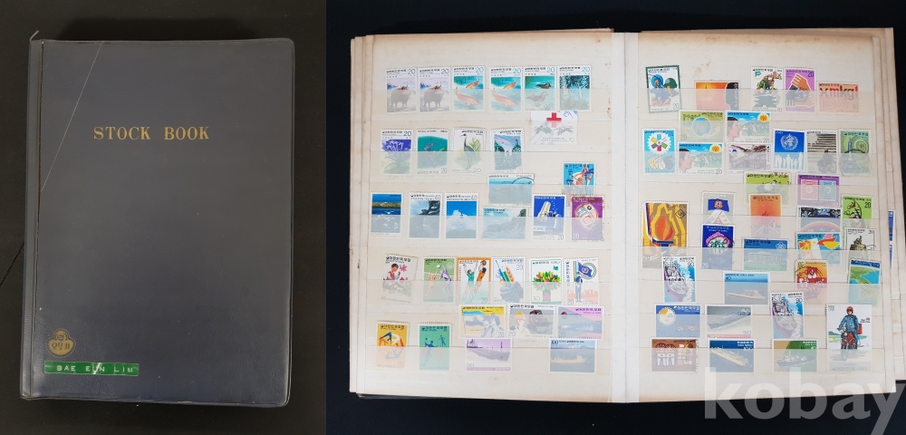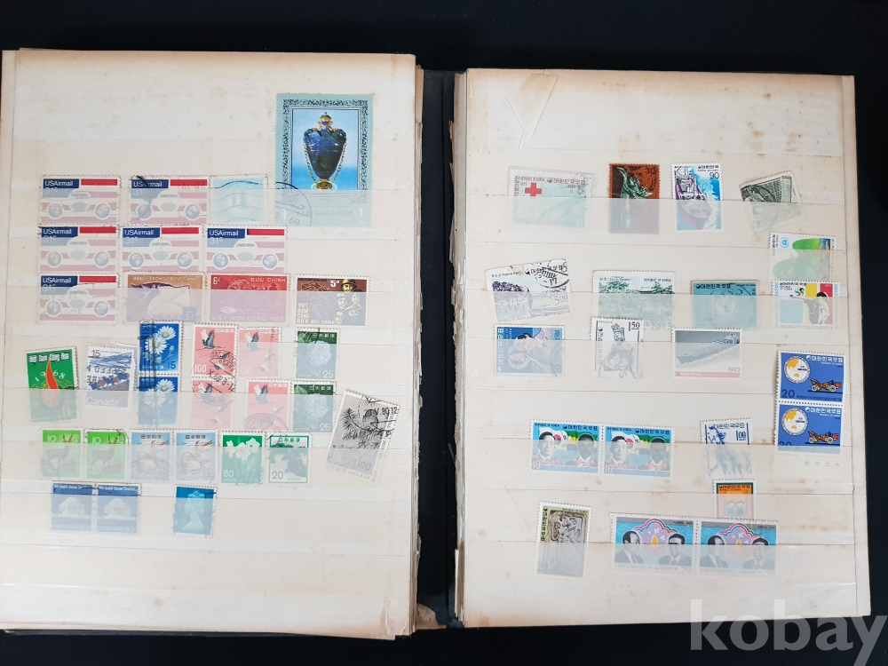 - 다량의 한국, 해외 우표들이 첨부된 우표책