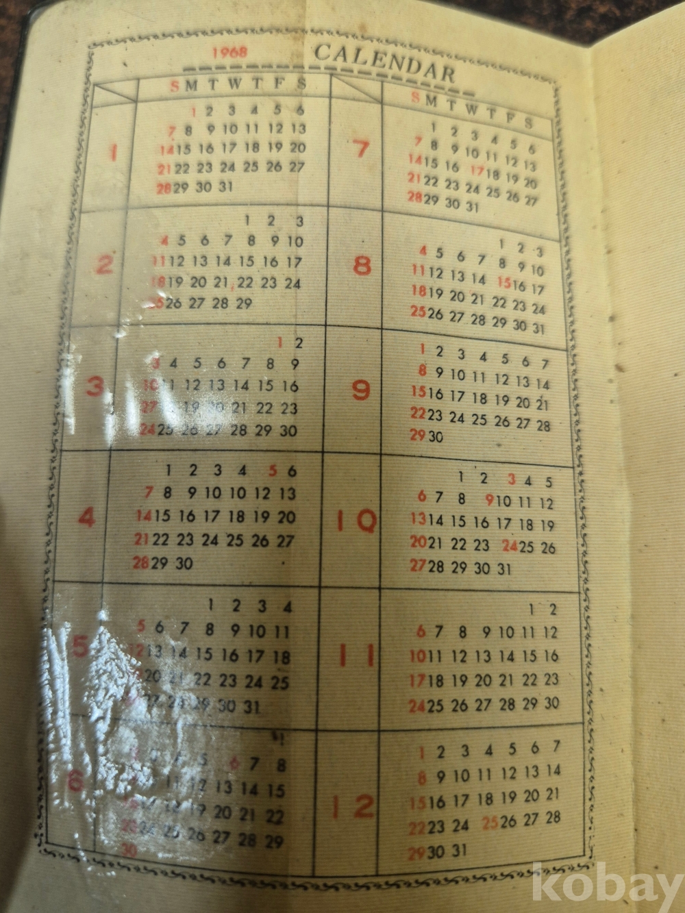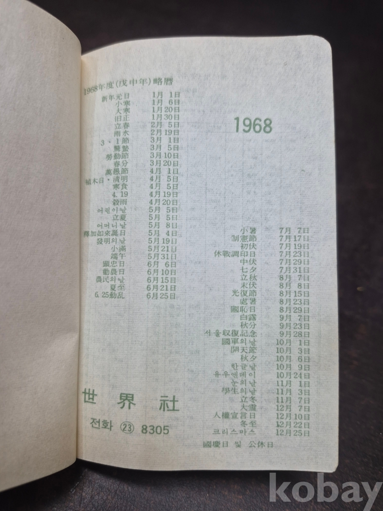 1968년 미사용 미니수첩 달력 지도 서울시 전찰 없을당시 지도 와 우편물 가격표 7*11*1