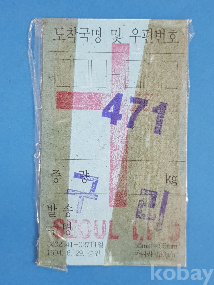 [t44] 1990년대 외국→한국행 우편물 우편행낭 부표*SEOUL I.P.O. 구리