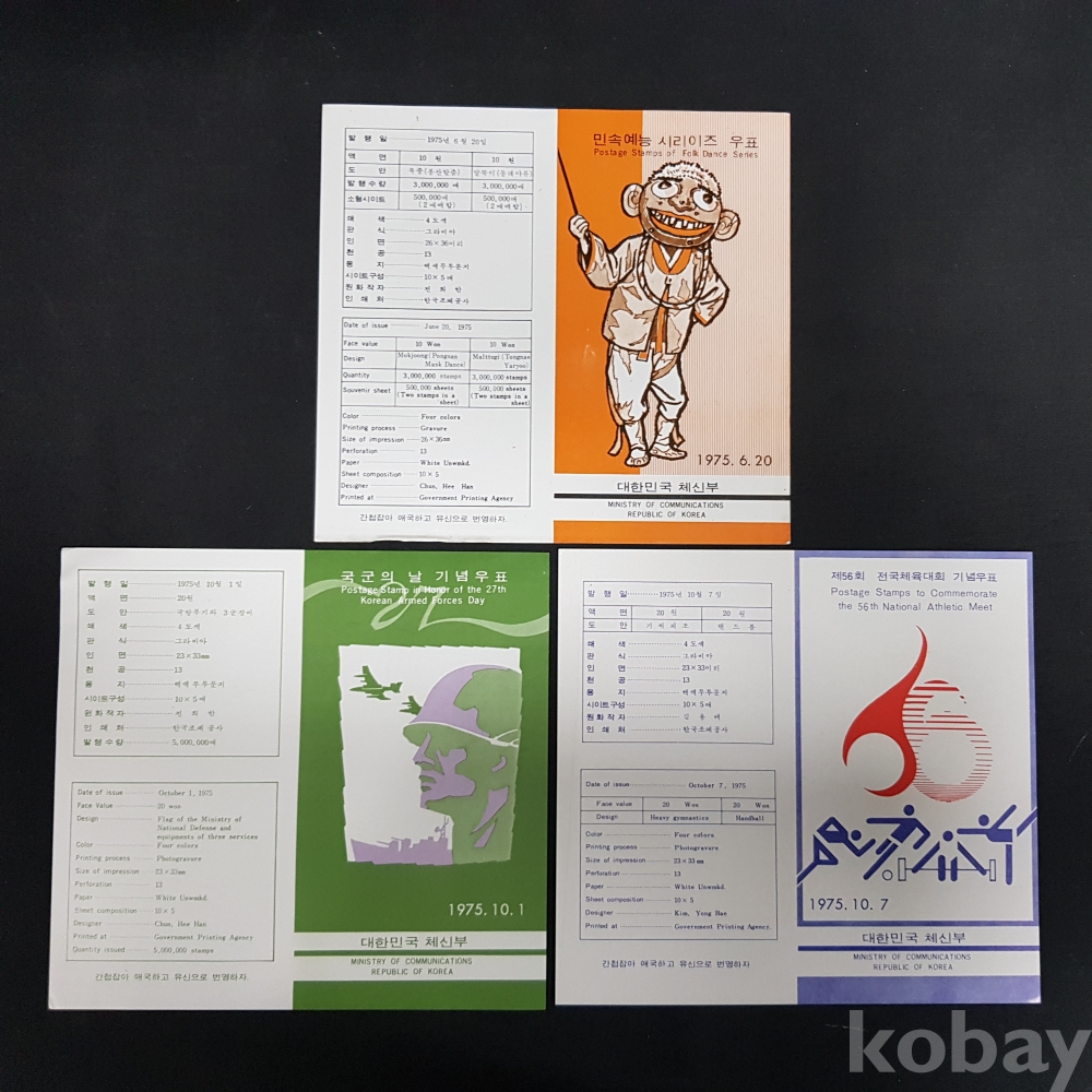 - 1975년 국군의 날, 민속예능 시리즈 등 안내카드 3종 모음