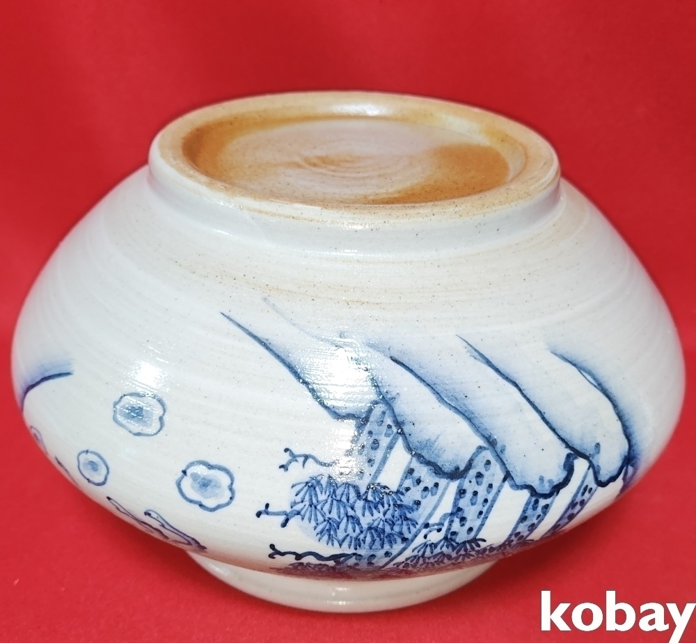 청화백자 장생도 문양 바둑알 형 도자기입니다,