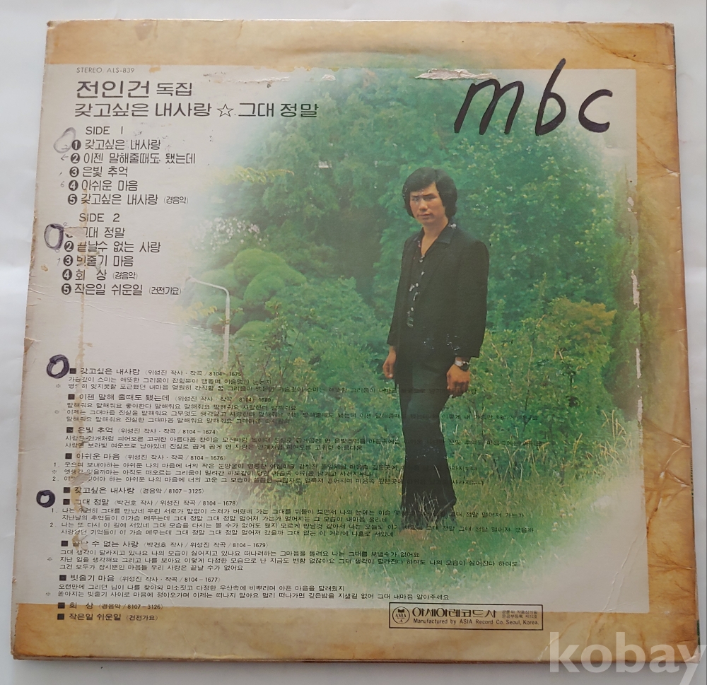 전인건(금지반,비매품)Lp/갖고싶은 내사랑,그대 정말