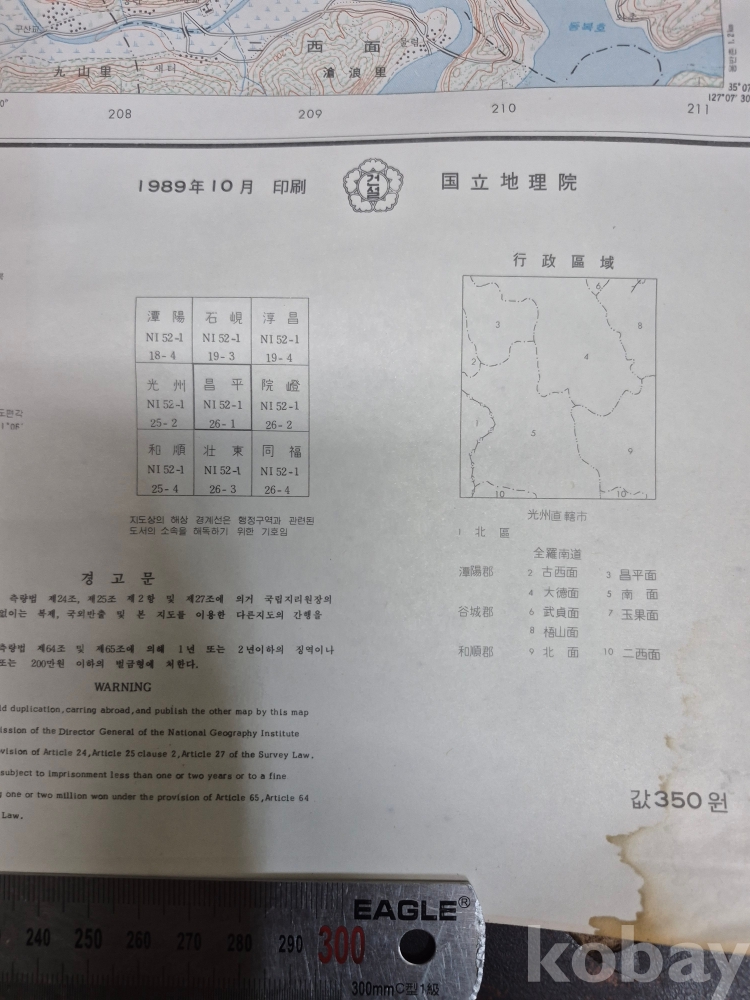 1989년 강원도 평창 1:25000 지도 54*80