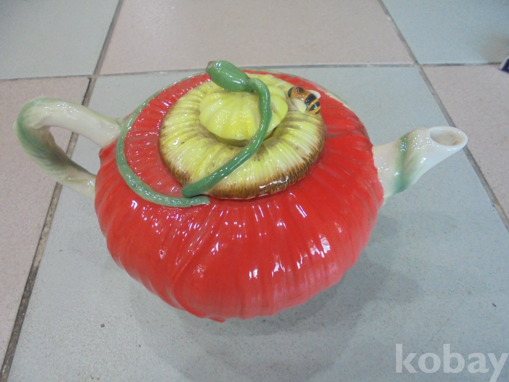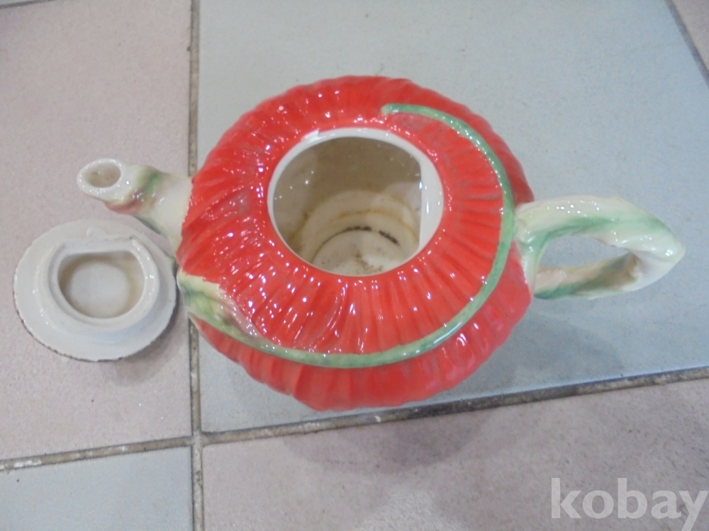 특이하게 뚜껑에 벌이있고 실뱀이 뚜껑과 몸체가 맞아야닫히고 열리는 기묘하게만든 완전예술적인 상태완벽한 진홍자 주전자