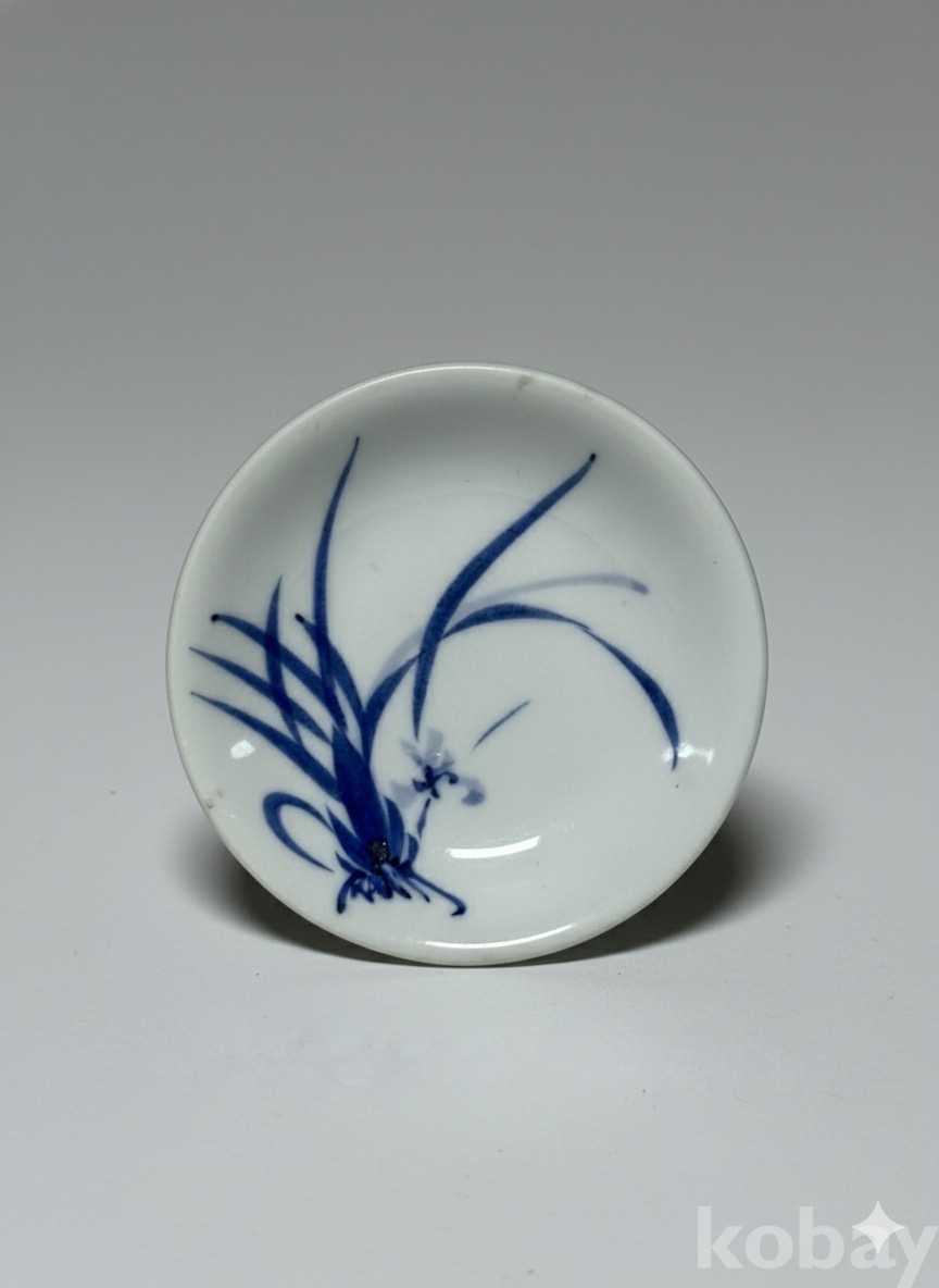 청화로 간결한 난초가 그려진 소접시입니다.