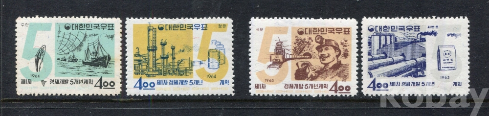 - [우표] 1962년 미사용 1차 경제개발 2집 & 3집 4종 (MNH : Mint Not Hinged) : 이미지 참조하세요