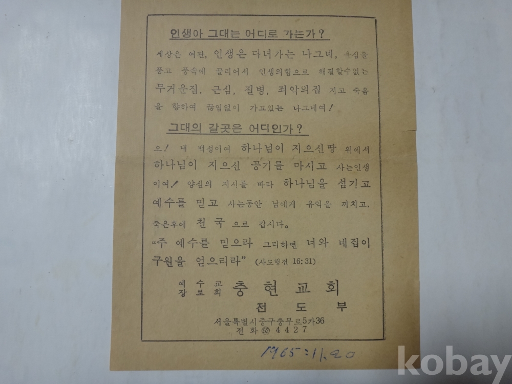 인생아 그대는 어디로 가는가 ? - 뒷면, 우리의 참 이웃 예수님 (1965년, 충현교회)