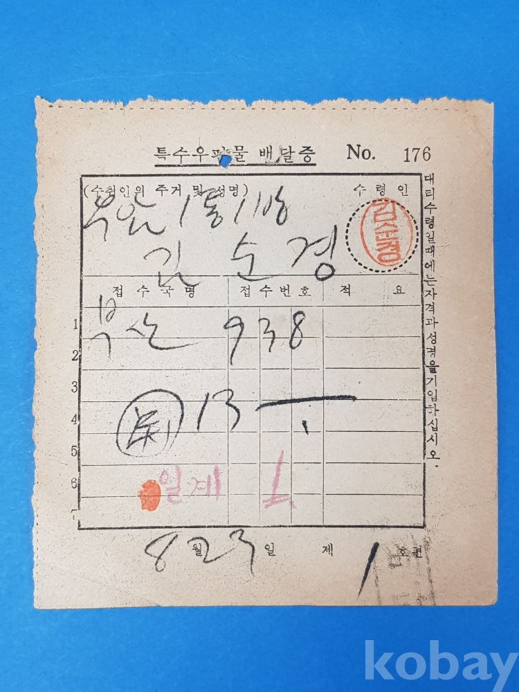 [n49] 특수우편물 배달증/우표 2매첩부