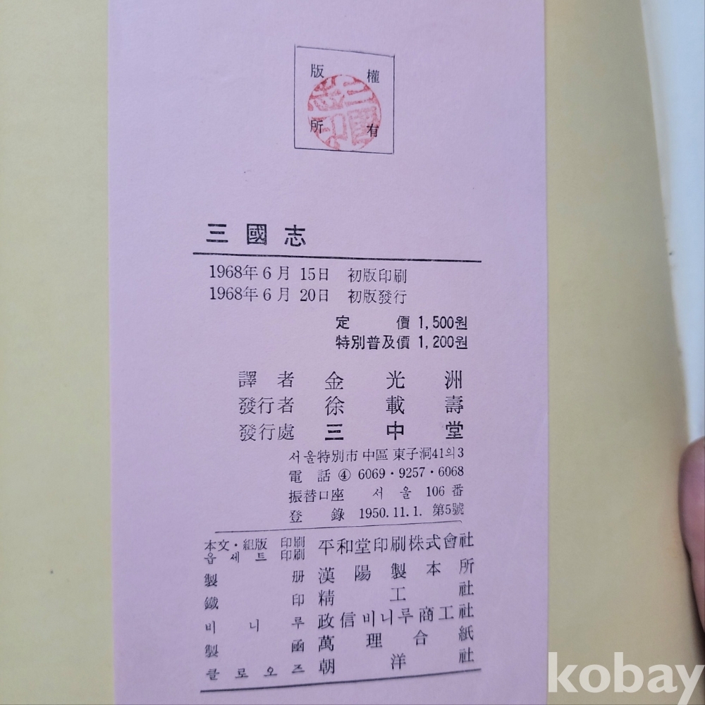 삼중당 삼국지 2편 1968년 초판본 ; 중급, 세월감 등/서고H1209