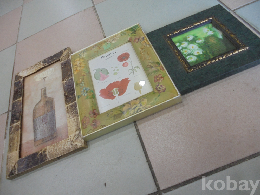 양귀비의 아룸다움을 내용을 체계있게 민들어 액자 광주리의 백장미 군방화액자 고급양주병의 국화류꽃 1송이와액자 총3점