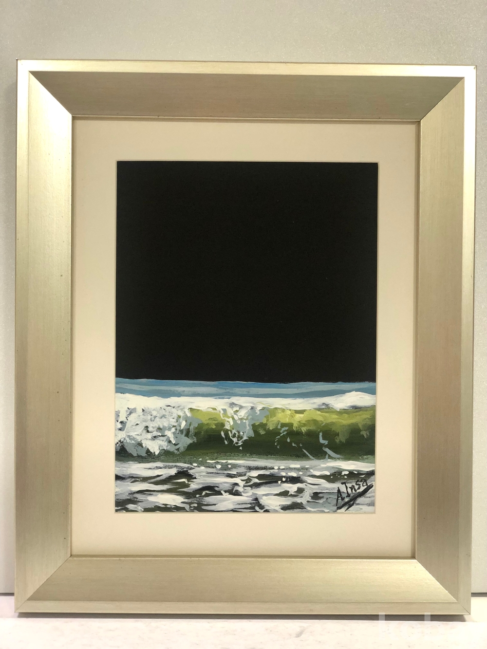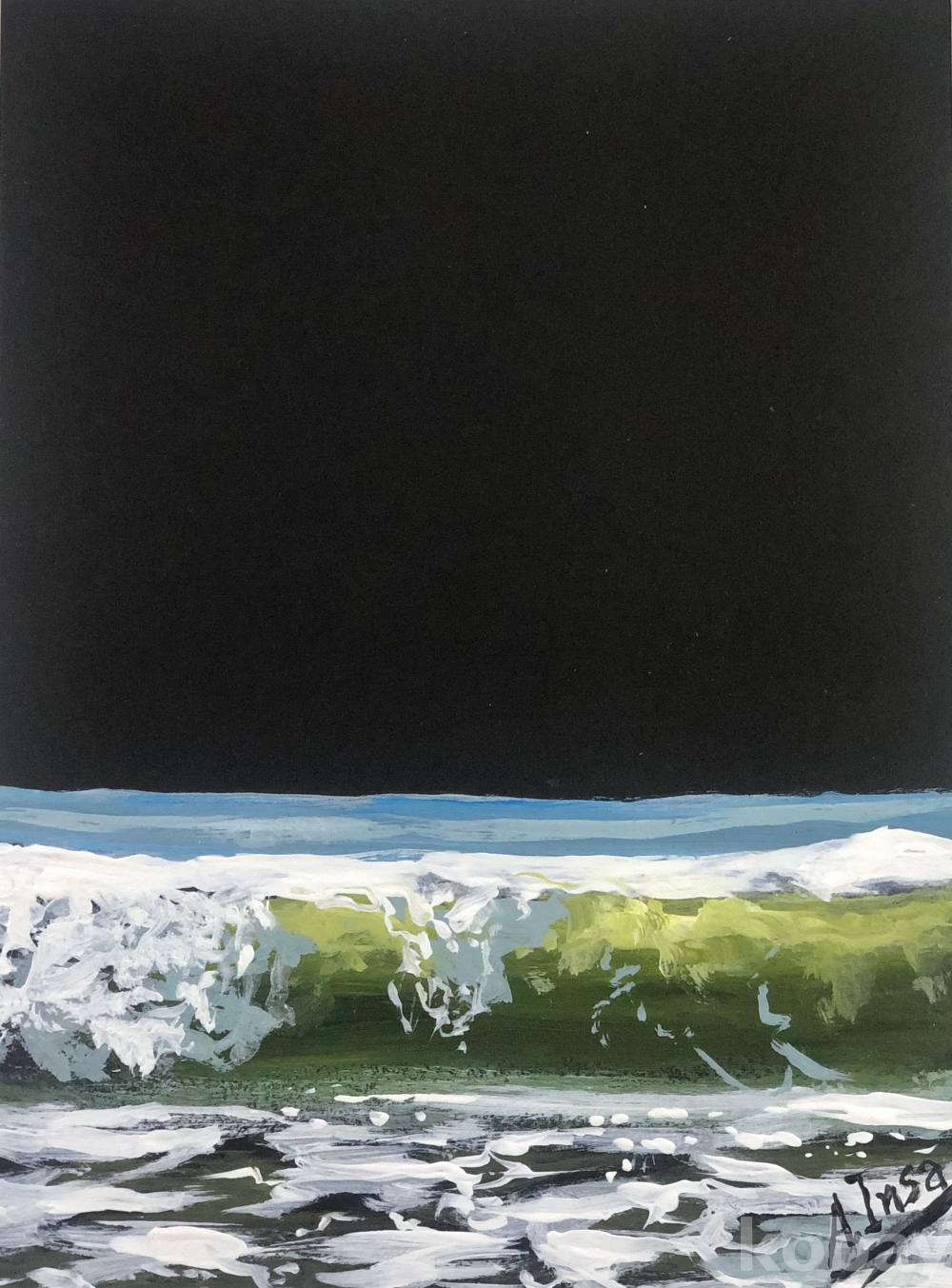 바다가 폭풍을 앞두고 있는 것을 포착한 것처럼 긴장감과 아름다움을 동시에 느낄 수 있는 인상적인 구성의 작품입니다.