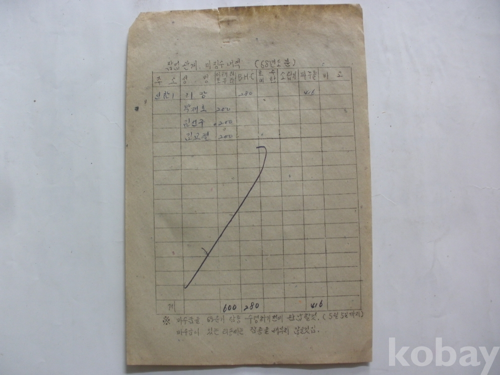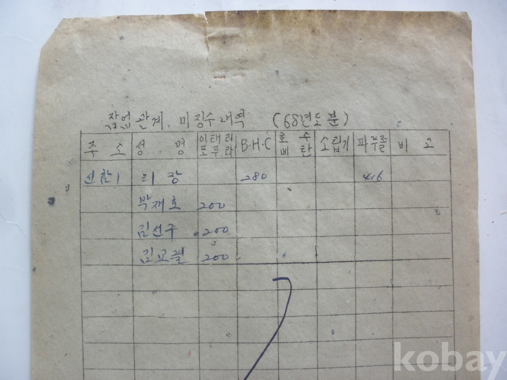잠업관계 미징수 내역 - 이태리 포푸라 등, 미수금 있는 리동에는 잠종을 배부않을것임 (1968년도분, 신함1리)
