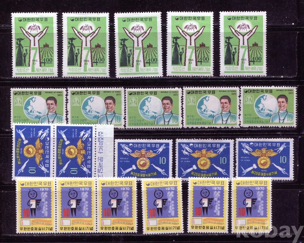 - [우표] 1970년대초 미사용 기념우표 모음 2 (All MNH : Mint Not Hinged) : 이미지 참조하세요