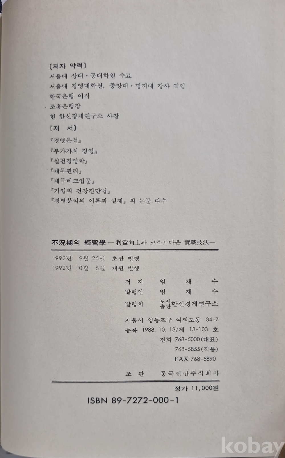 [불황기의 경영학-이익향상과 코스트다운 실전기법]