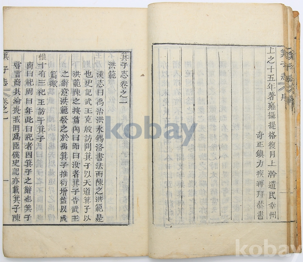 권수(卷首)에는 기자상(箕子像)·부찬(附贊)·기자수필(箕子手筆)이 있고, 윤두수의 『기자지』에 실린 사적도(事蹟圖)와 사기도(祠基圖) 외에, 홍범구주(洪範九疇)에 관한 도해와 성(成)·탕(湯)으로부터 기자에 이르는 기자의 보계도(譜系圖)가 실려 있다.