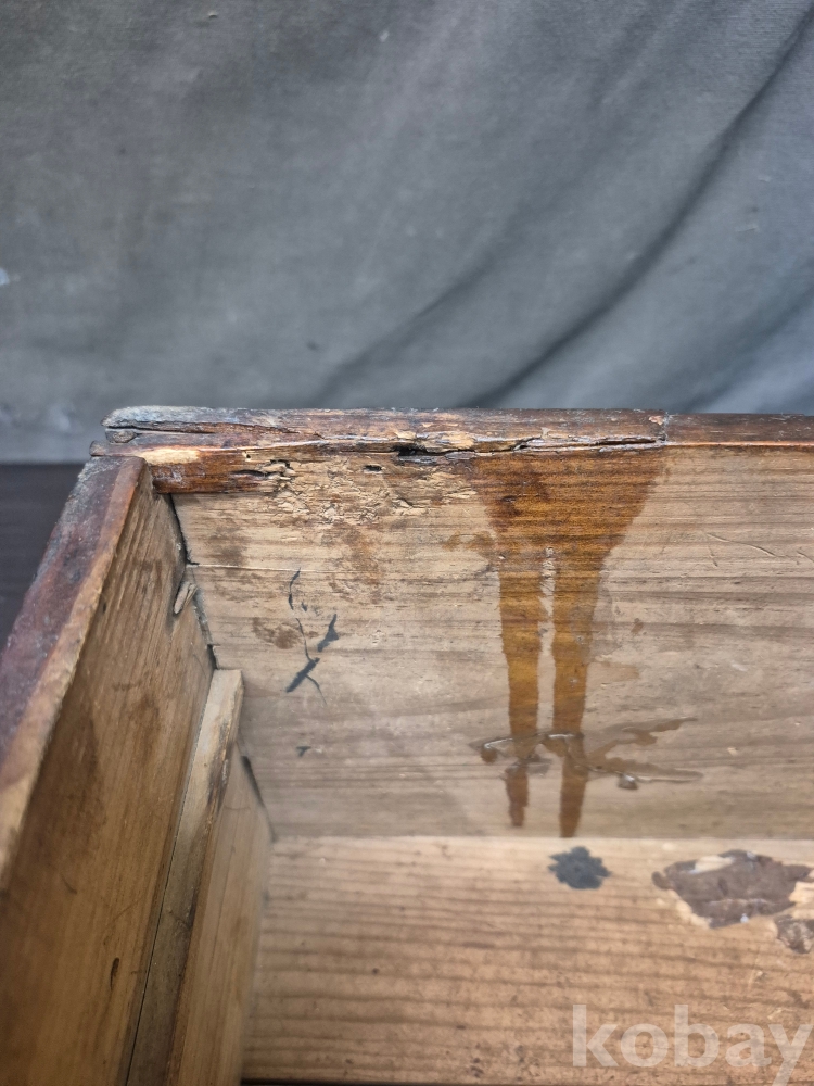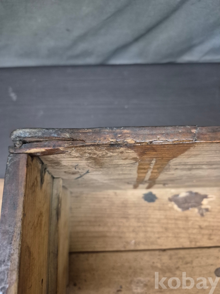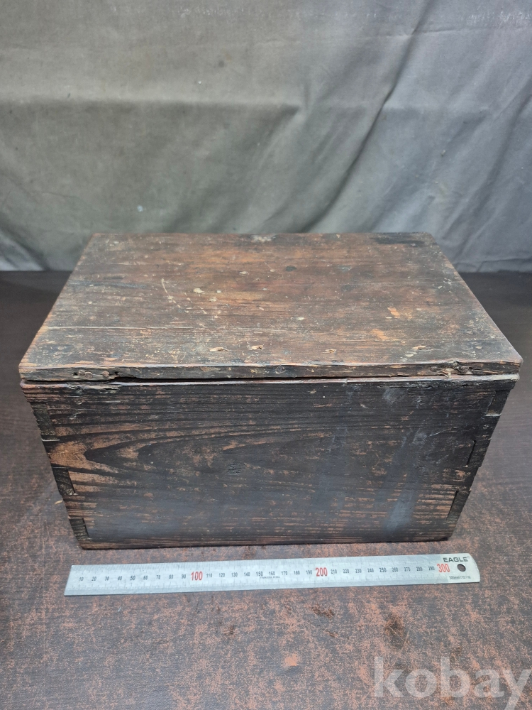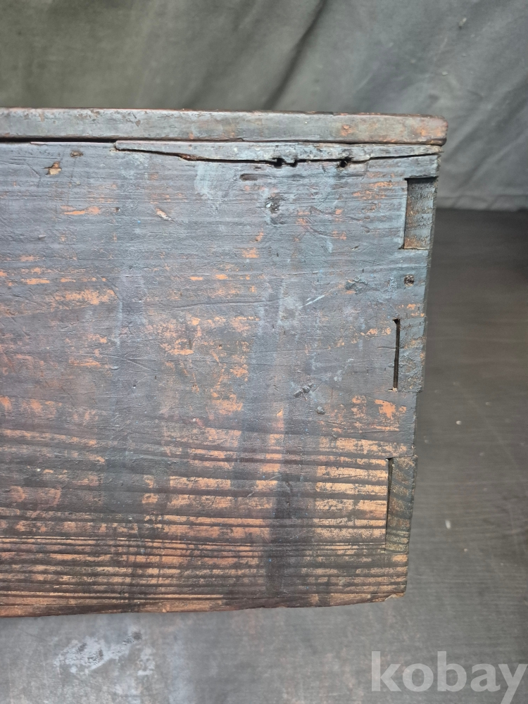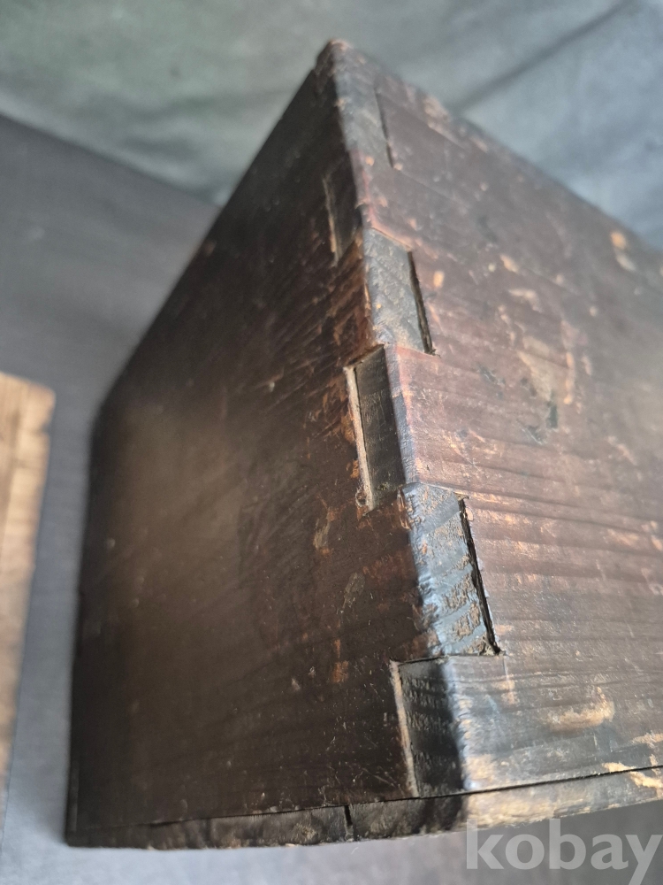 조선시대급 땟물이 꼬질꼬질한 서류함 벼루함 자료함 소나무를 사괴물림으로 만들어져 있어요 뚜겅과 옆부분 갈라짐 수리 흔적 있어요
