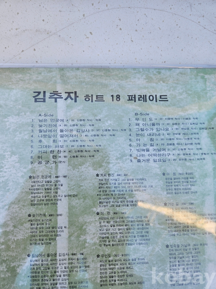 | 자켓상태 | EX : 약간의 마모, 모서리 찢김 존재 | 음반상태 | EX : 재생에 영향 없는 가벼운 기스 존재 | 발매정보 | 초반 | 가사지여부 | 무 |