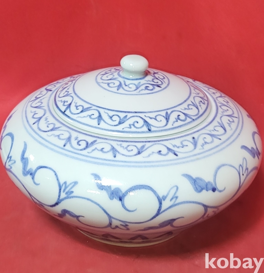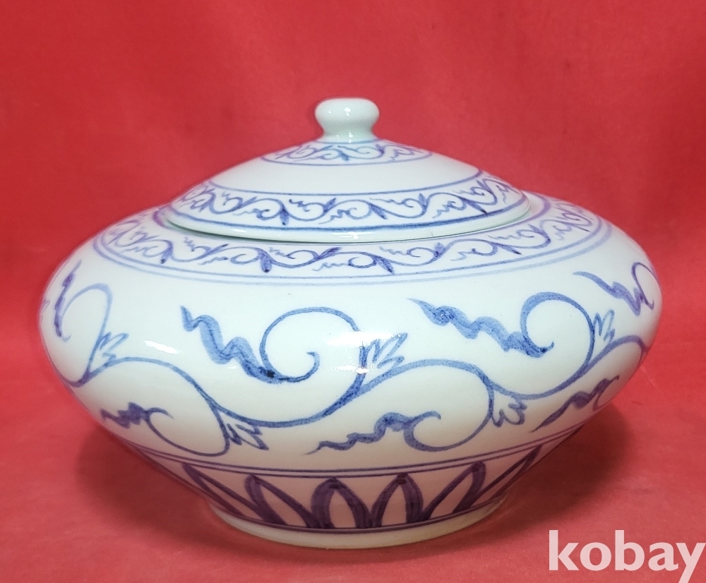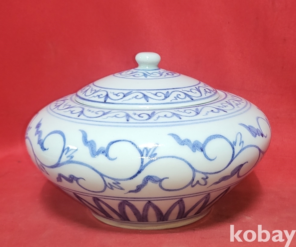 동우 도예 作 청화백자 화훼문 차통입니다,