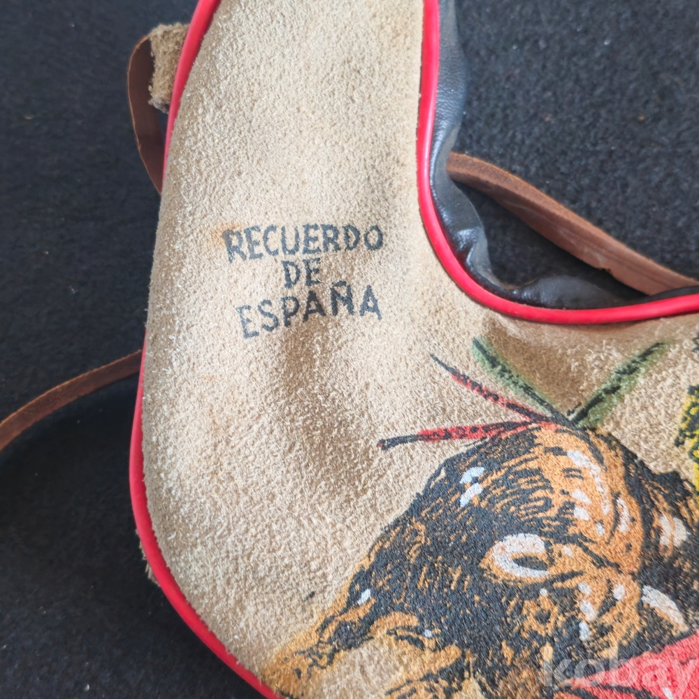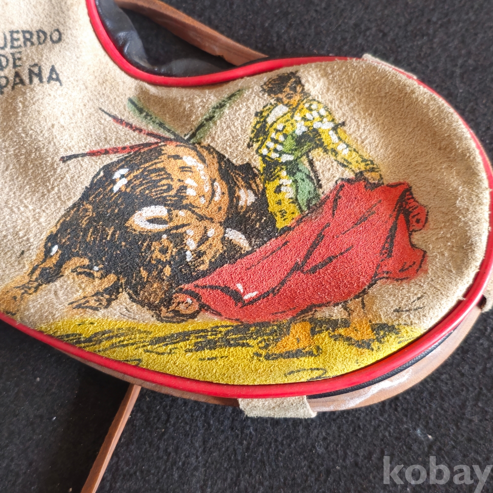 (((관광기념품/가죽물통))) 오래전 스페인에서만든 투우하는모습 빈티지 가죽 물통