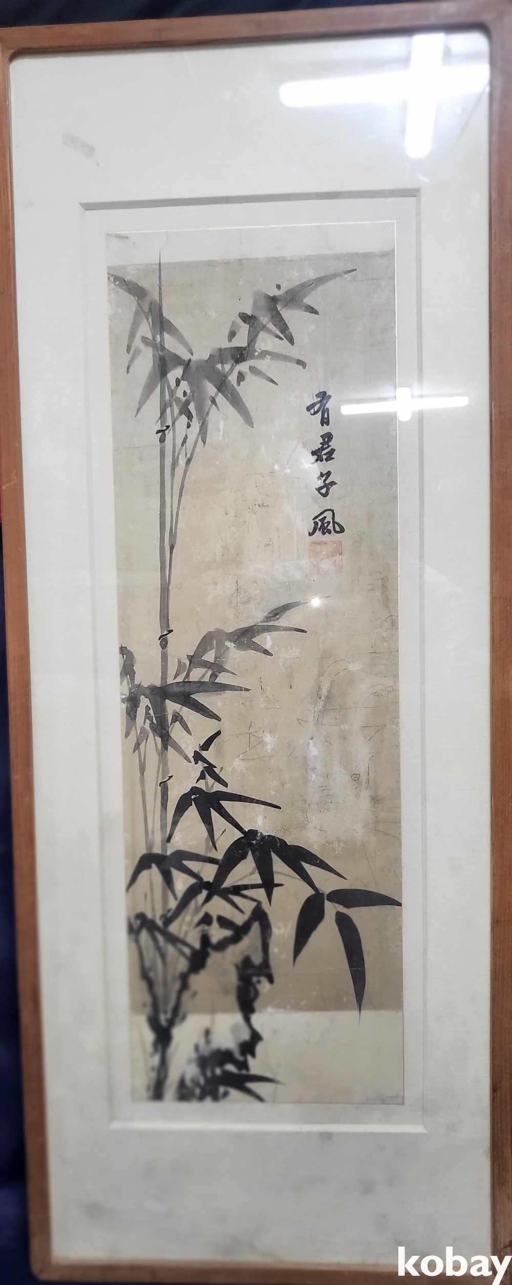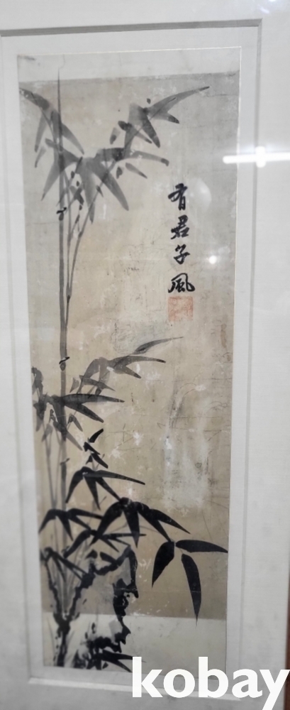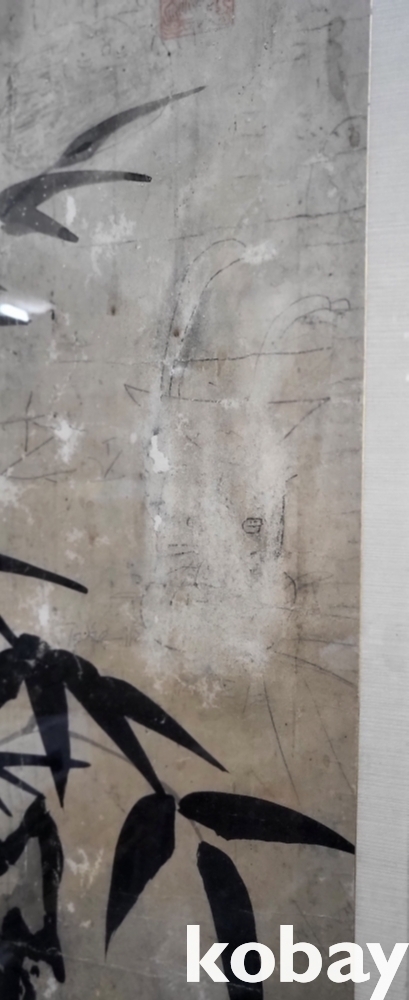 위와 아래 부분 색이 다른 것은 처음 표구시 큰 그림을 접어서 표구 되었던 것을 새롭게 펼치어 20만원을 들여서 새롭게 표구를 한 것입니다,