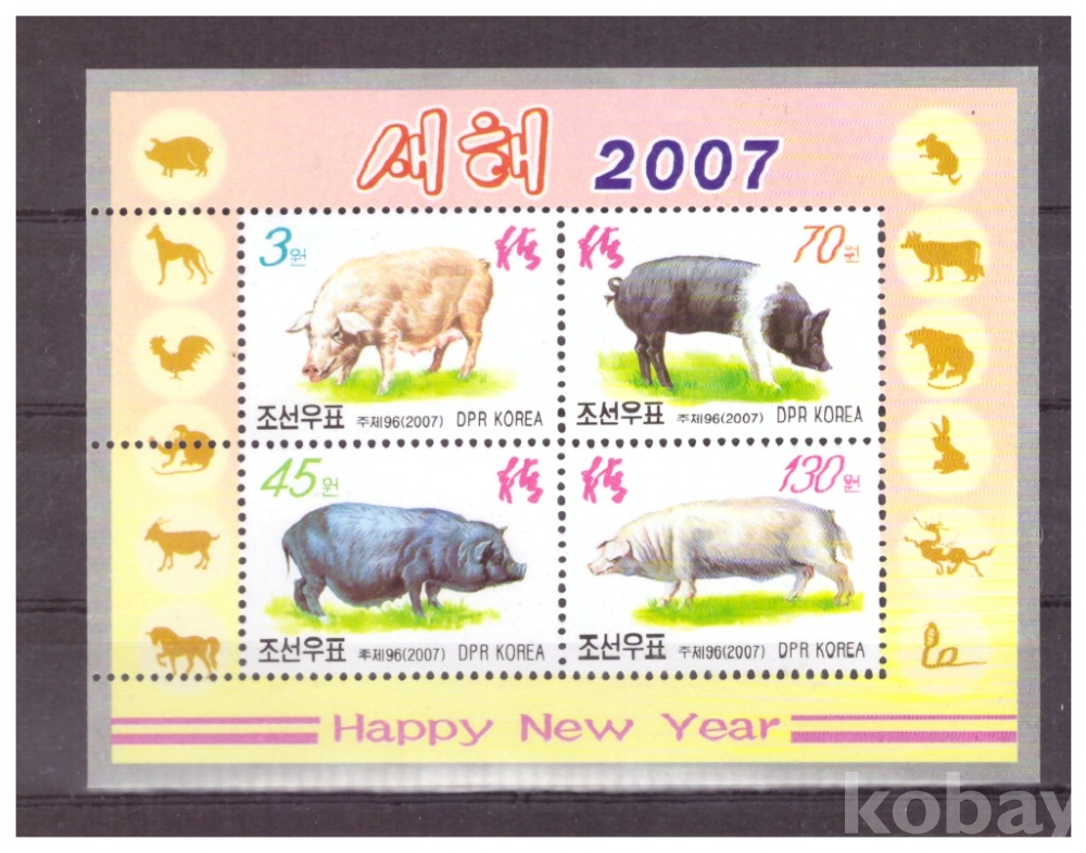 (동물) 북한 2007.1.1 2007년 새해우표(돼지) sheetlet of 4 MNH