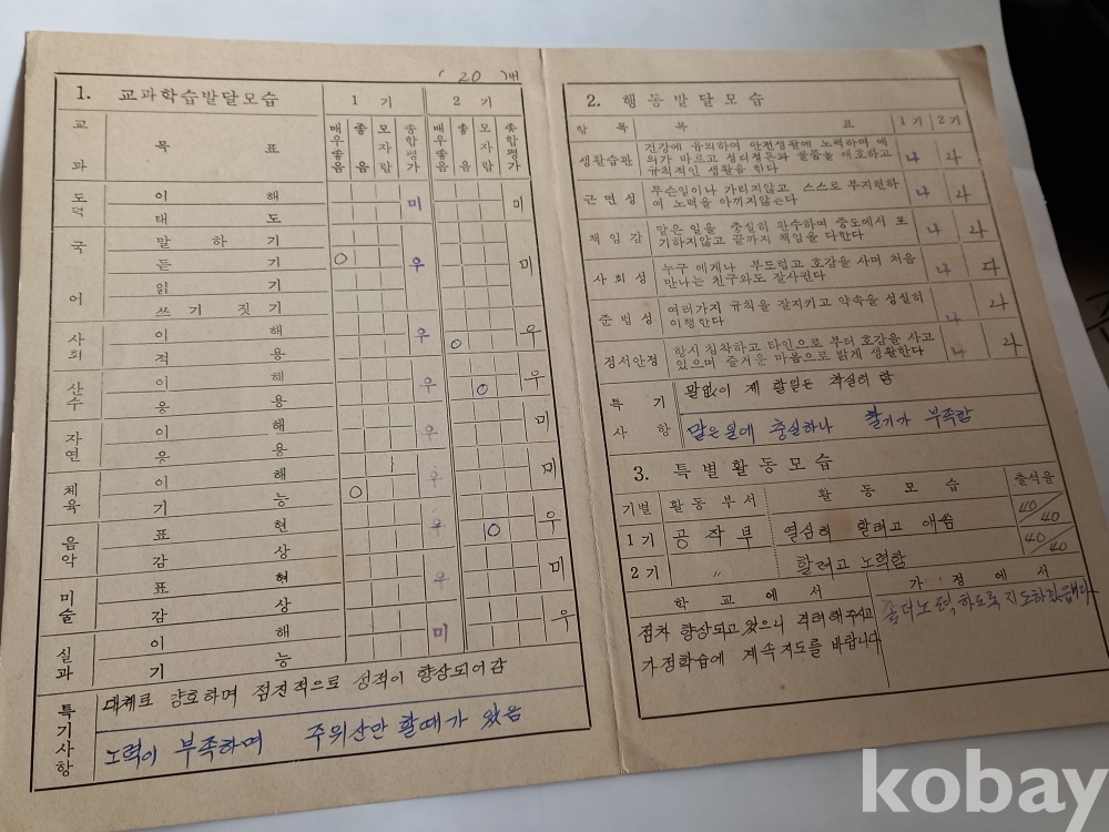 신 103) 통신표/ 부산양정국민학교