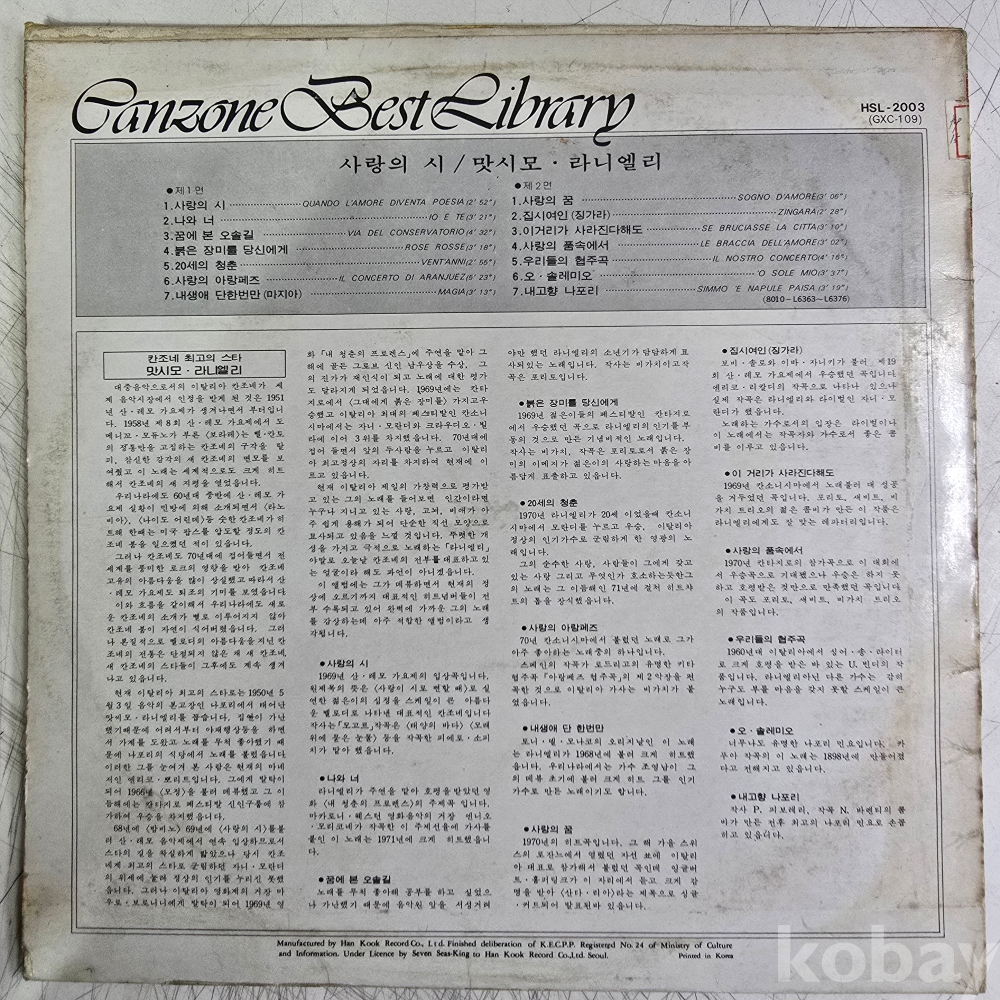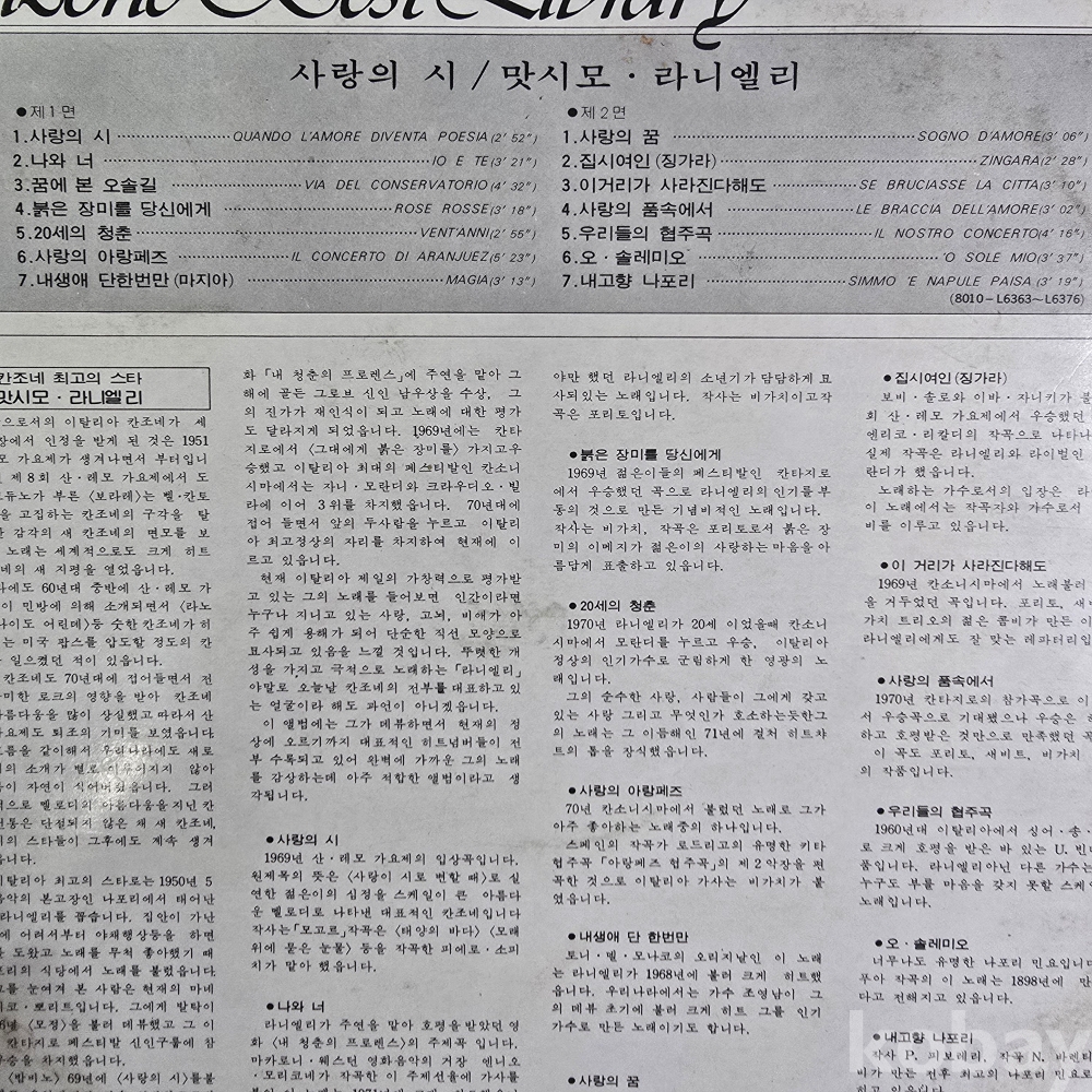 | 자켓상태 | EX : 약간의 마모, 모서리 찢김 존재 | 음반상태 | EX : 재생에 영향 없는 가벼운 기스 존재 | 발매정보 | 초반 | 가사지여부 | 무 |