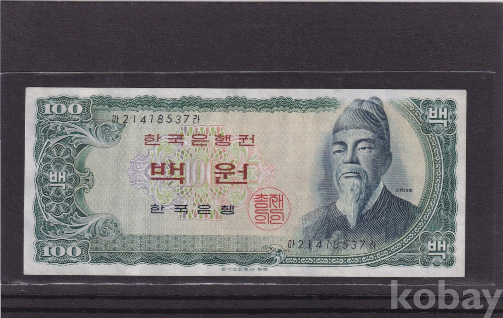 - 한국은행 1965년 세종 백원 줄세우기 2포인트 사용제 지폐