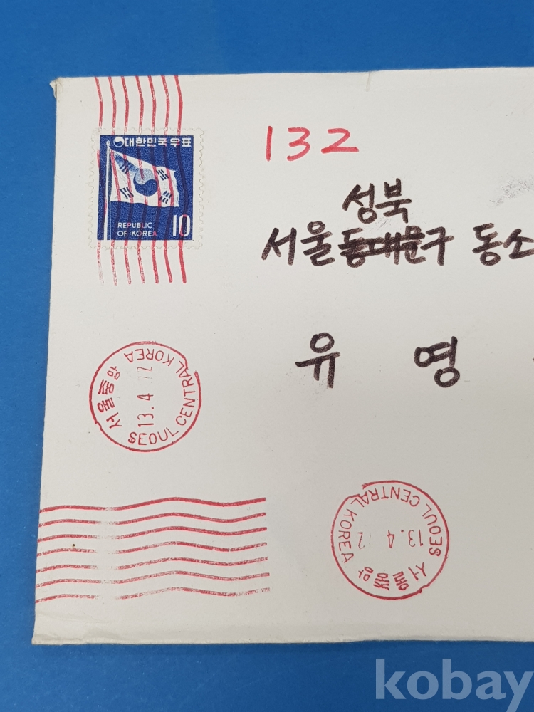 **** 제1차그라비아 10원 태극기 단첩 실체*서울중앙 시험인(로라인)*청첩장