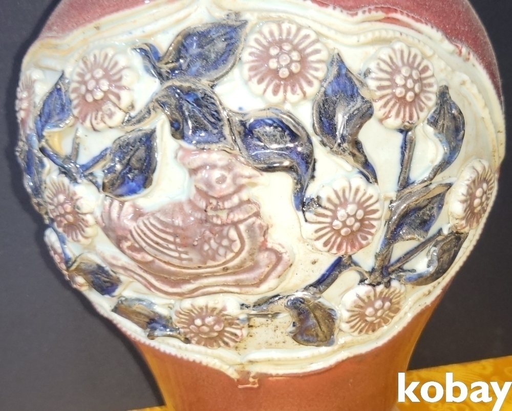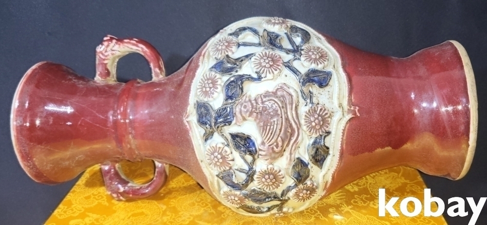 유리홍 첩화(貼花) 화조(花鳥) 문양 양이병입니다,
