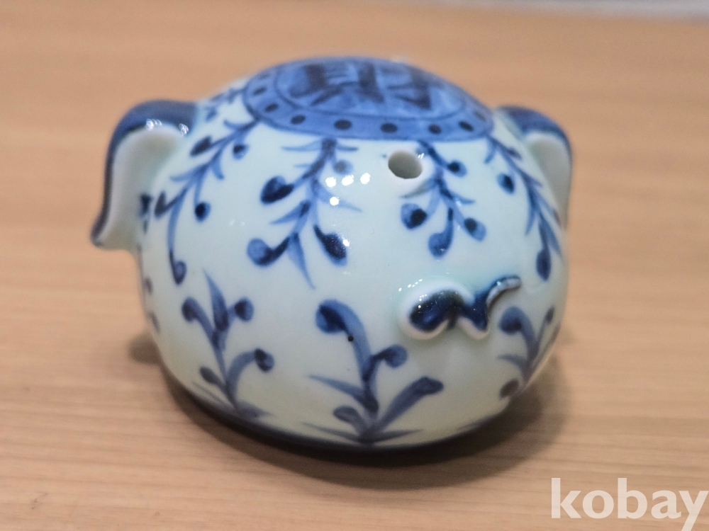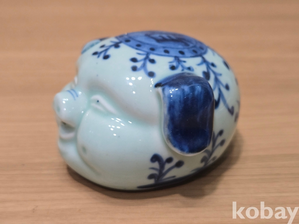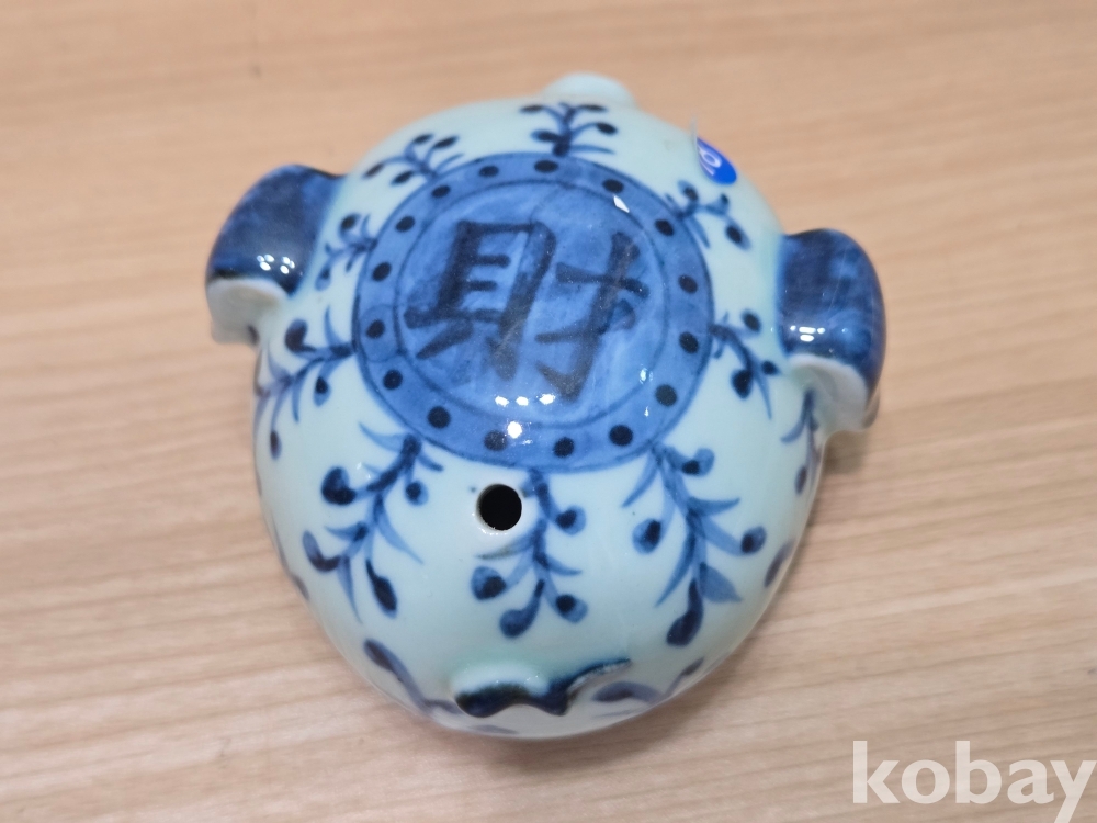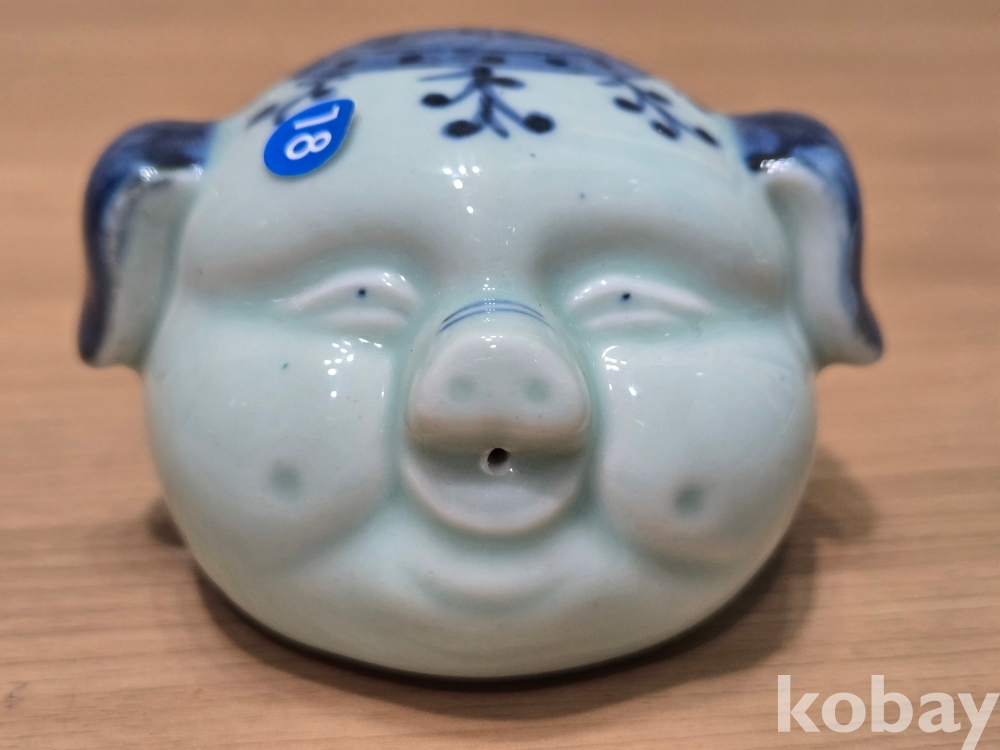 활짝 웃고 있는 돼지 형상의 연적 도자기 입니다.