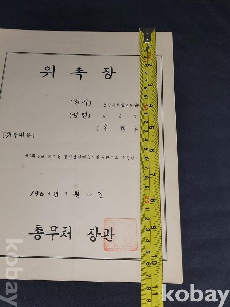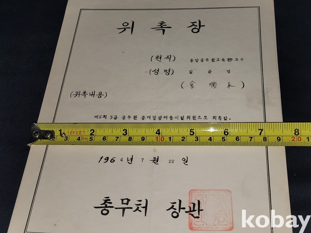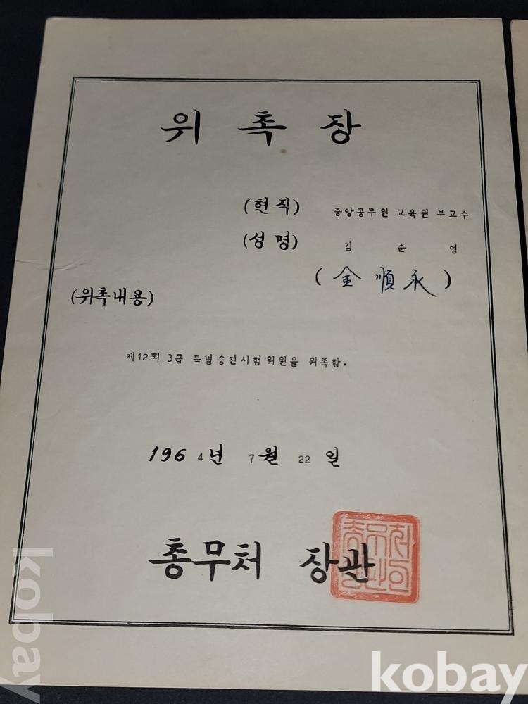 빈티지 희귀한 1965년 총무처장관 수여 5급 공무원 공개경쟁채용 시험위원 위촉장, 1964년 3급 특별승진시험위원 위촉장