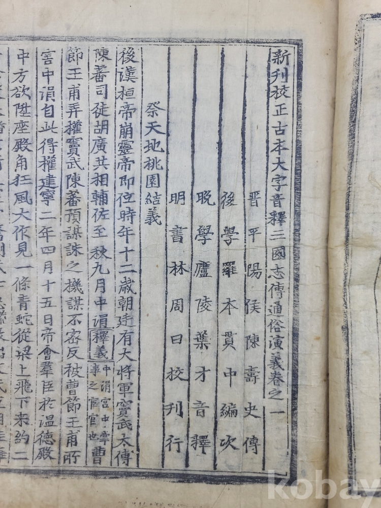 이 책은 명(明)나라 주왈교(周曰校)가 간행한 《신간교정고본대자음석삼국지전통속연의》를 조선 중기에 제주(濟州)에서 간기(刊記)를 넣어 복각(覆刻)한 판본으로서, 완본은 전12권 12책으로 구성되어 있다.